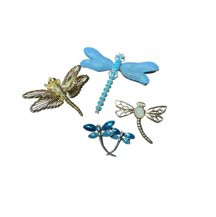 A Swarm Of 4 Dragonfly Brooches - Modern & Vintage Including Rare Monet