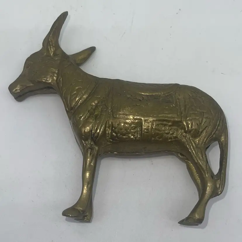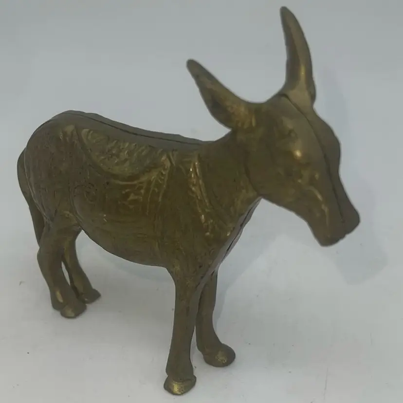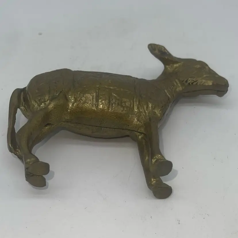 #1827 vintage brass donkey figurine, ideal for a nativity scene display.
