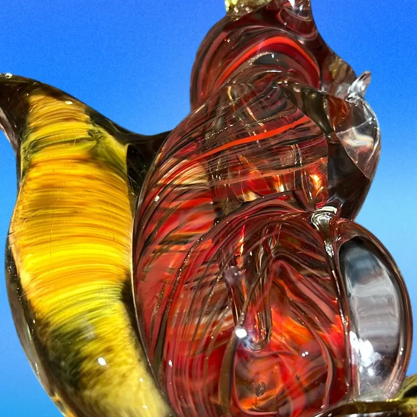 A vintage Murano? Hand Blown glass squirrel, in red and amber. Has Sticker But It’s Not Legible. 6” No Chips Or Cracks