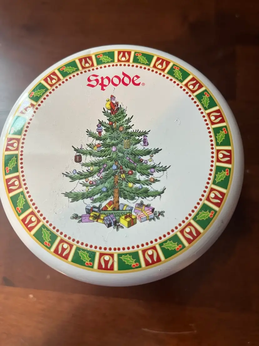 The Spode Christmas Tree pattern, introduced in 1938, has become a beloved holiday tradition for many families. This particular tin likely served as a decorative container for holiday treats or small gifts, featuring the iconic Christmas tree design that evokes festive cheer. Such tins are popular collectibles, especially for those who appreciate vintage holiday decor and the craftsmanship of Spode.