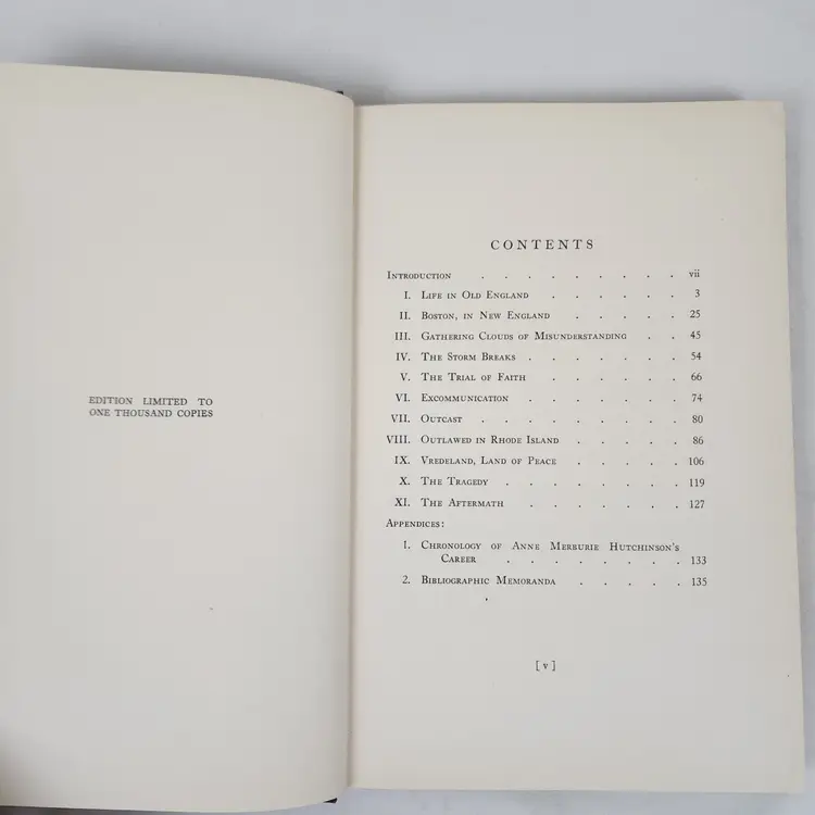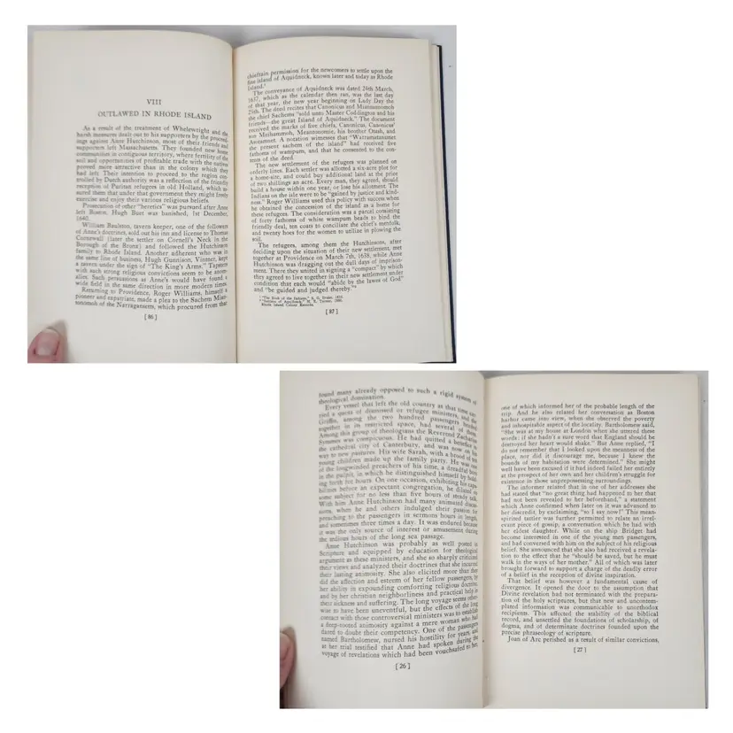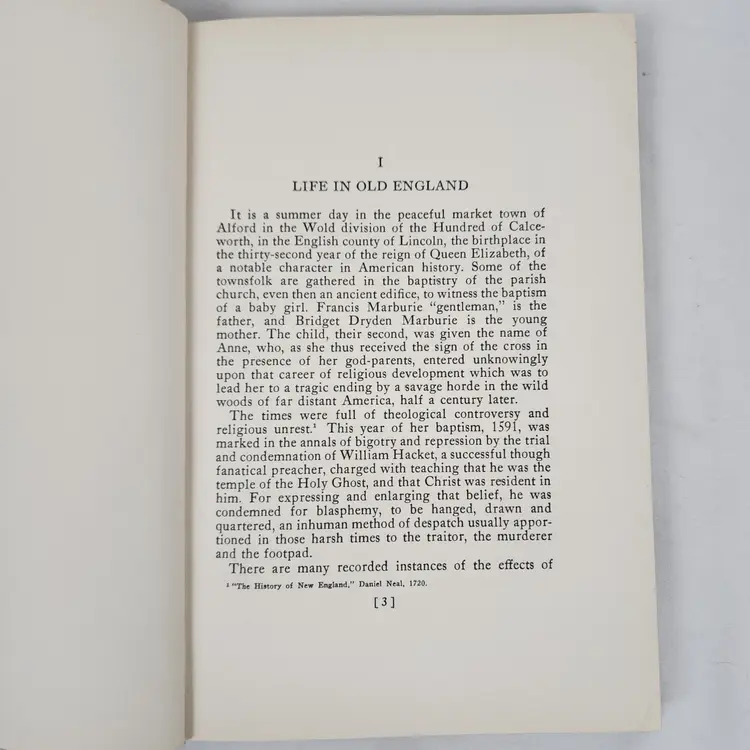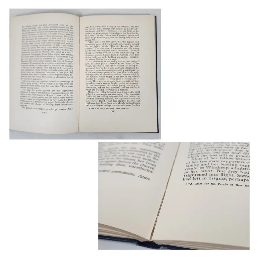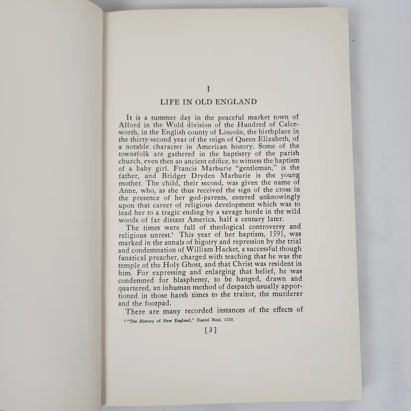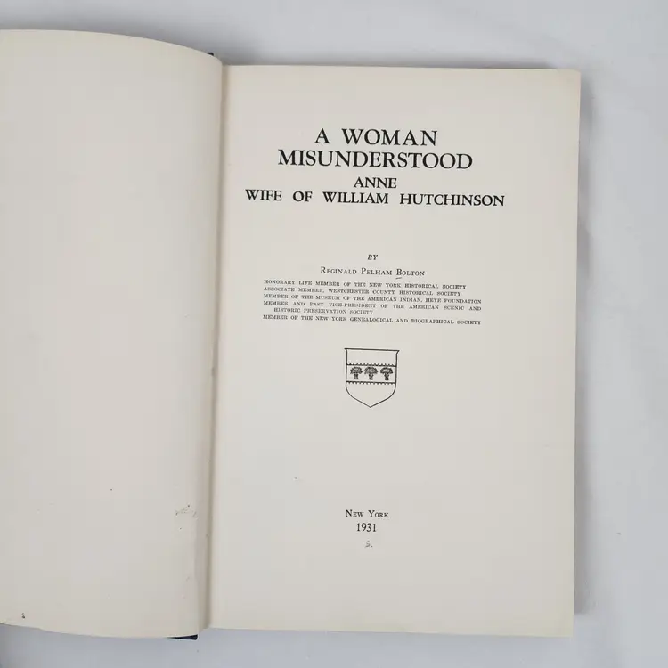 Book Title: A Woman Misunderstood: Anne, Wife of William Hutchinson Narrative Type: Nonfiction Publisher: The Schoen Printing Company Original Language: English Edition: First Edition, Limited Edition Vintage: Yes Publication Year: 1931 Type: Novel Format: Hardcover Language: English Author: Richard Pelham Bolton Features: Ex-Library Genre: Historical, History, Religious & Spiritual Topic: American History, Christian History, Christianity, Historic Figures, Regional History, Religious History Country/Region of Manufacture: United States