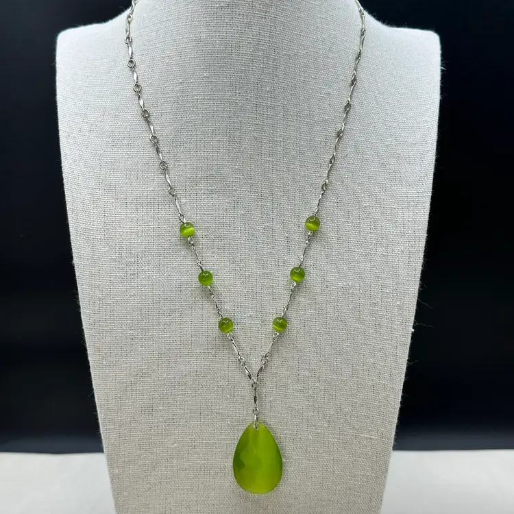 A106 - Avon Green Bead Y Necklace
