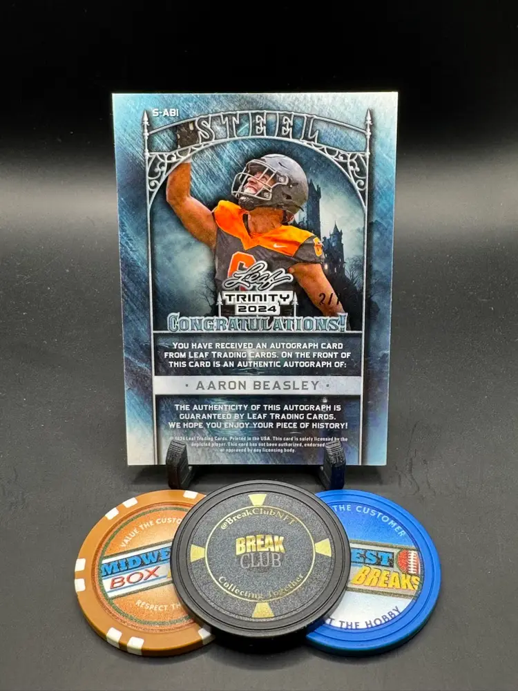 Aaron Beasley Auto 2/7 2024 Leaf Trinity West Virginia University