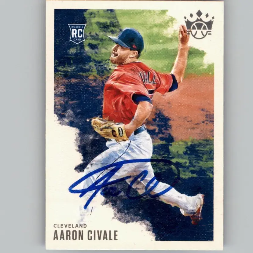 Authentic 2020 Diamond Kings rookie card featuring Aaron Civale of the Cleveland Indians, signed in blue ink. A must-have for Indians fans and rookie card collectors. Your purchase supports Signatures For Soldiers in helping homeless and disabled veterans.