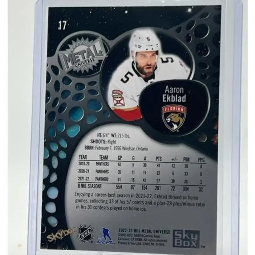 Aaron Ekblad 2022-2023 Skybox Metal Universe Hockey Blue Spectrum FX Florida Panthers. Shipping is $1 for the first card, +$0.50 for additional cards, and ships PWE within 1-2 days.