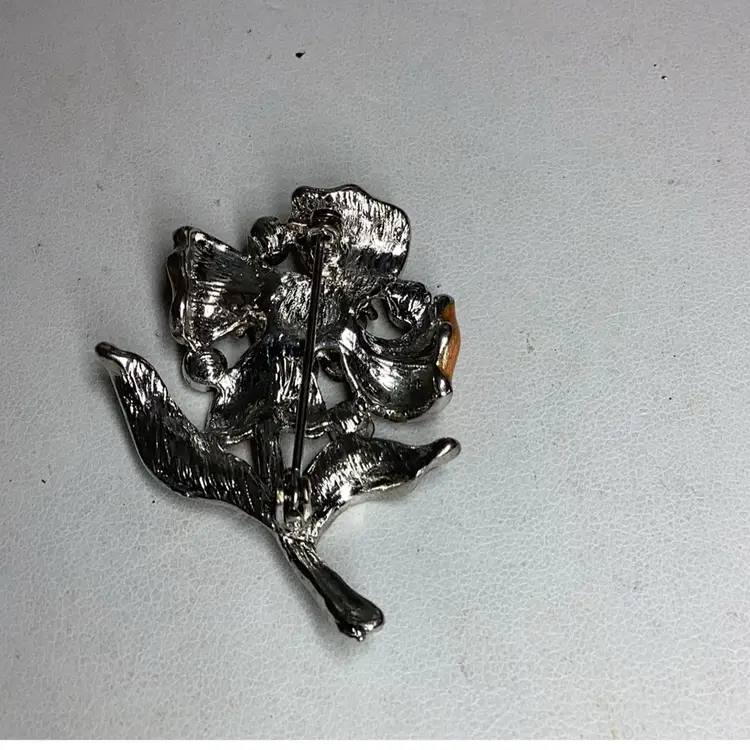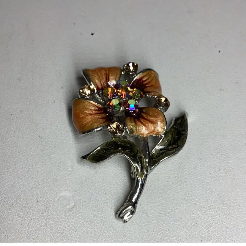 AB Orange Tone Enameled Flower Brooch 1 3/4” - Newer