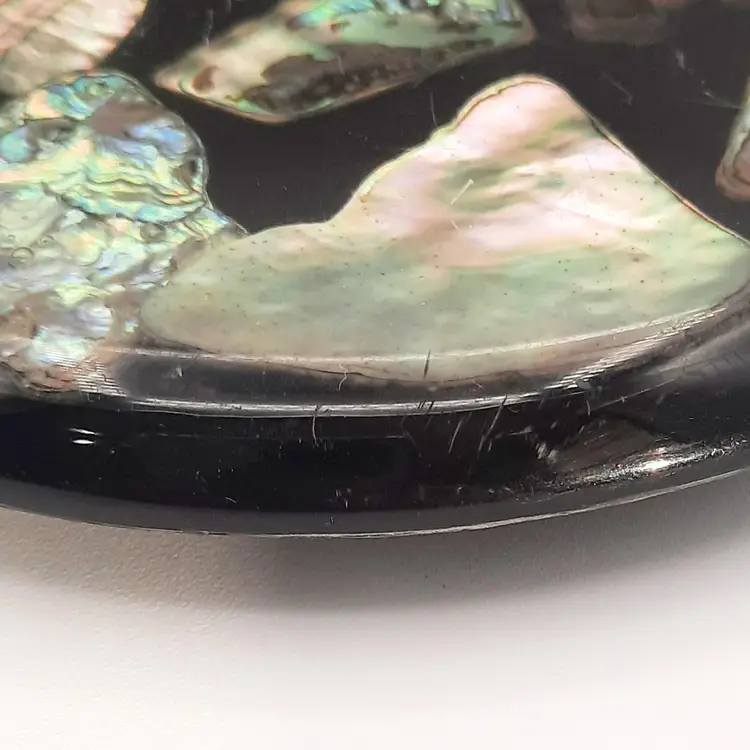 5 1/2", does have some wear including a small chip and some scuffs/scratches