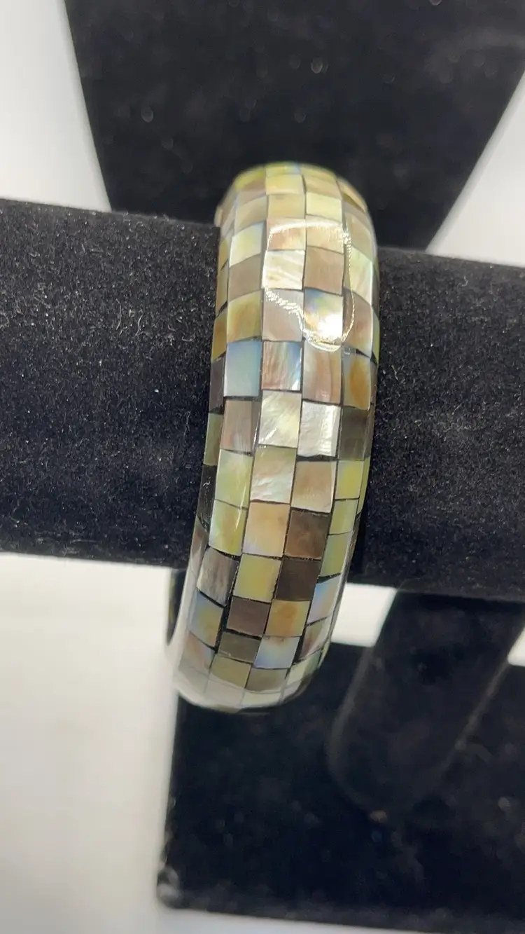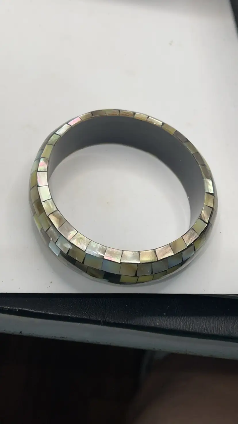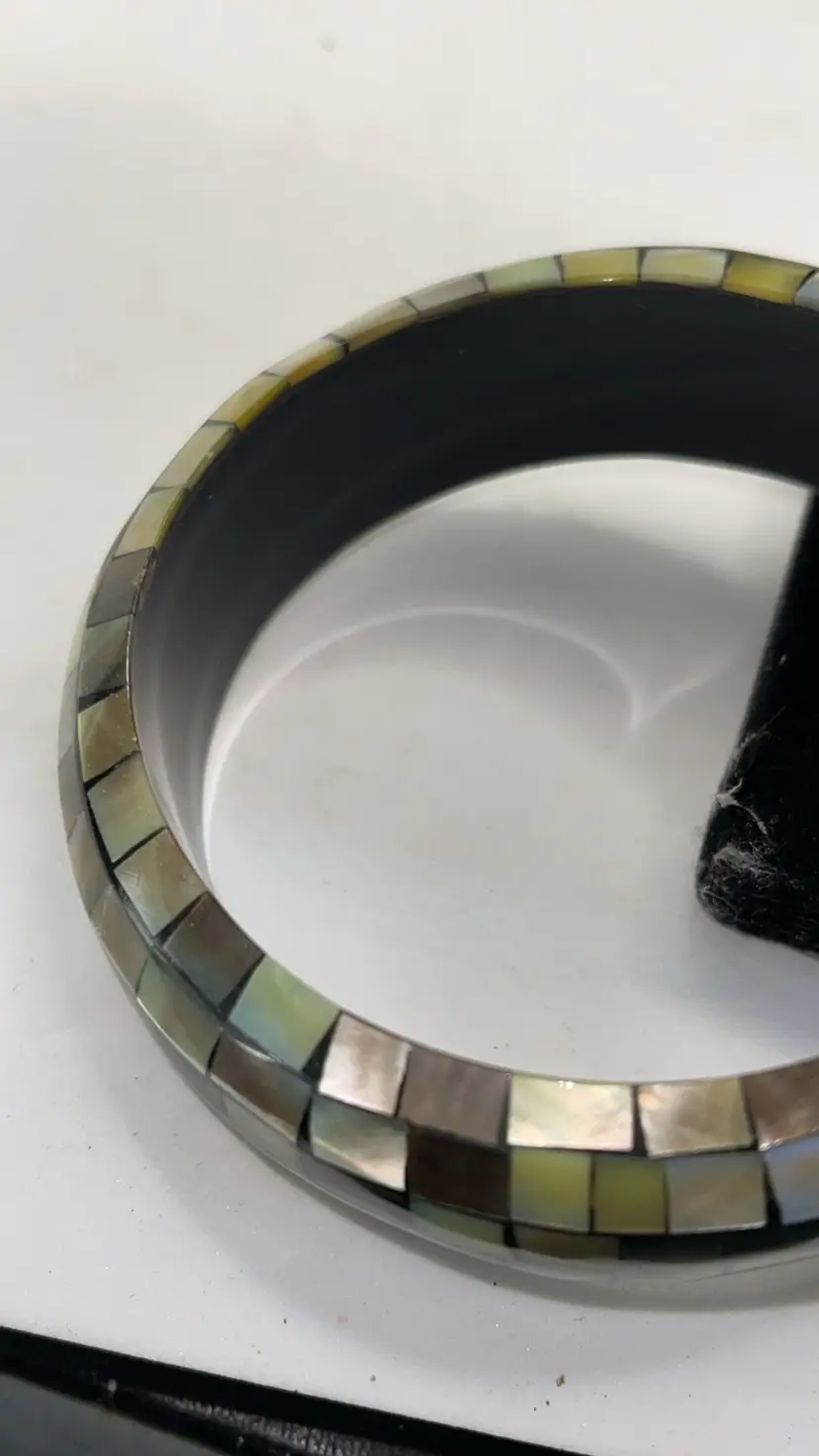 Abalone Shell Inlaid Bangle Bracelet 3 Inches Around