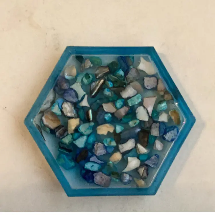 Blue abalone, trinket tray, octagon shape is 3 1/2” x 4 1/2” very pretty, handmade.