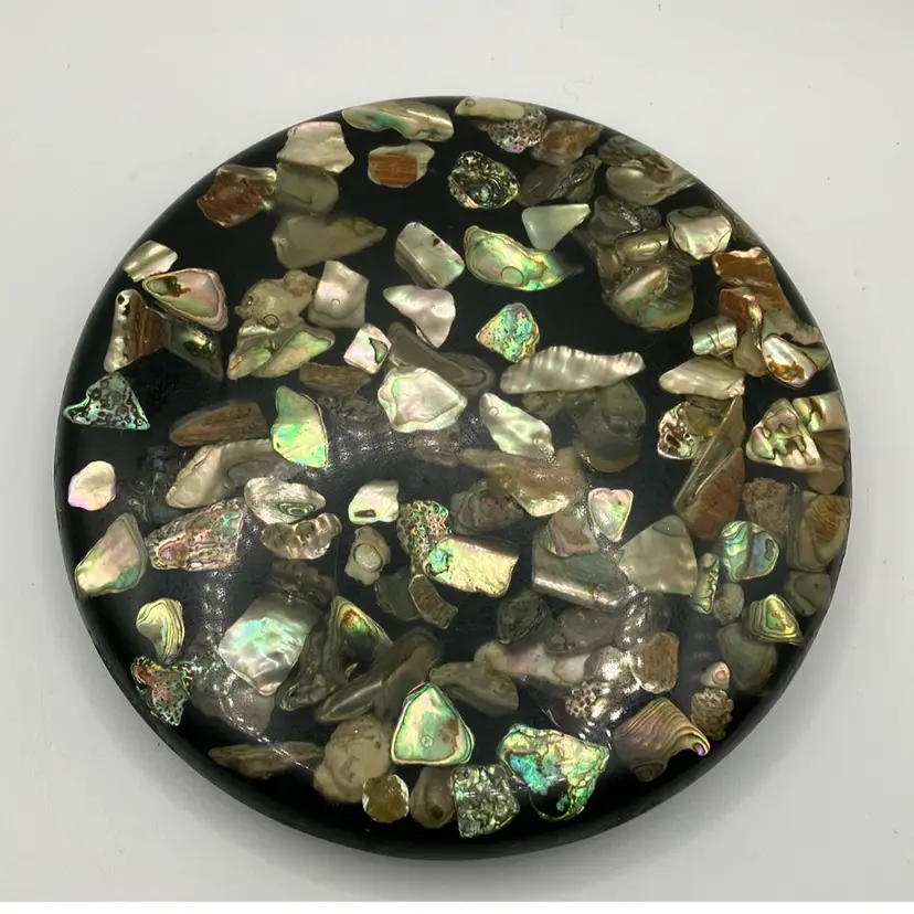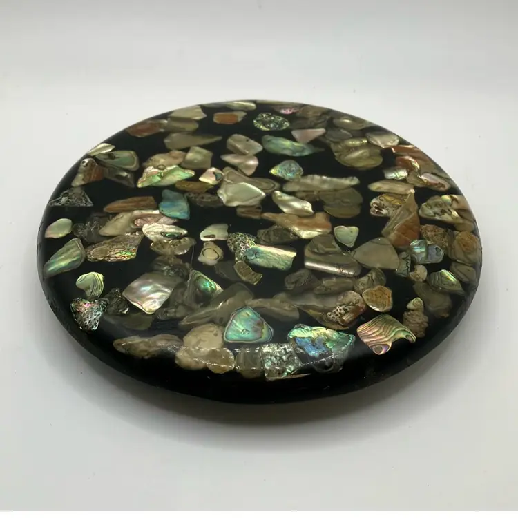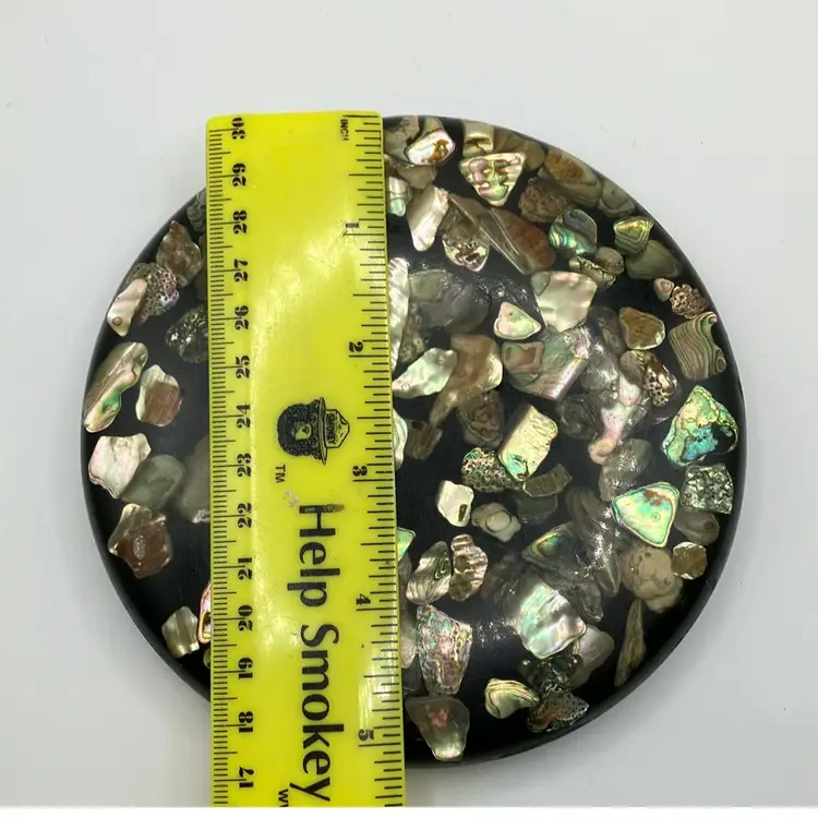 No stickers or markings, a couple small imperfections on top surface. Tried to get a pic in last pic but it blends in pretty well - price reflects imperfection.