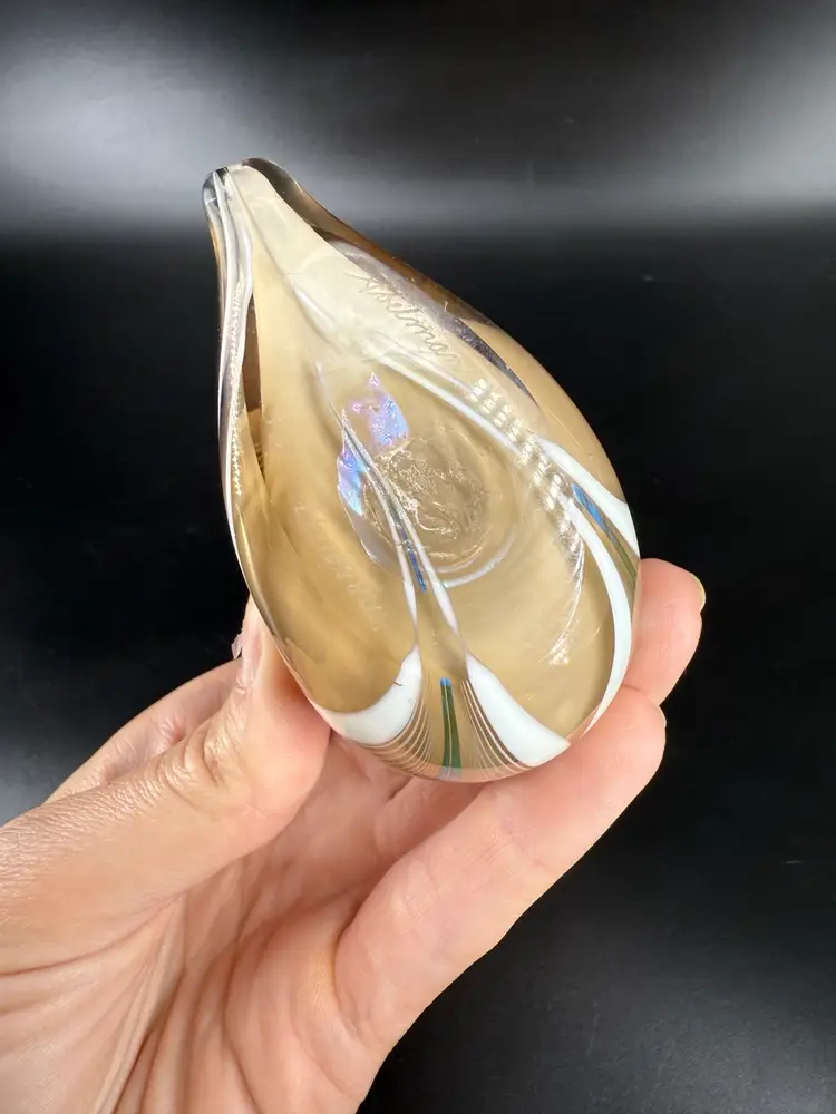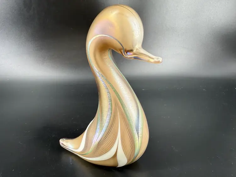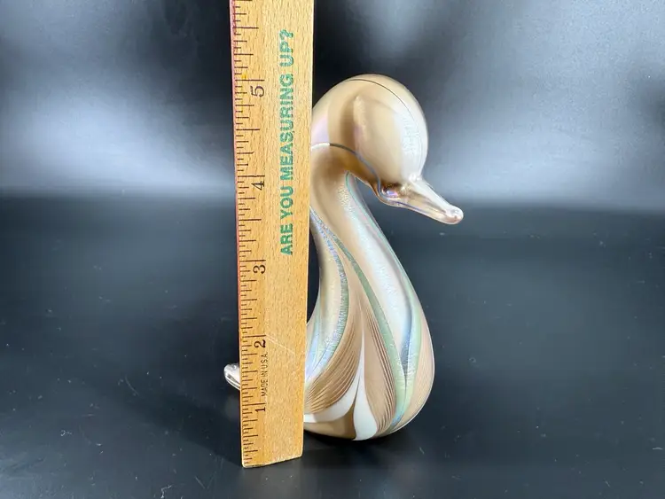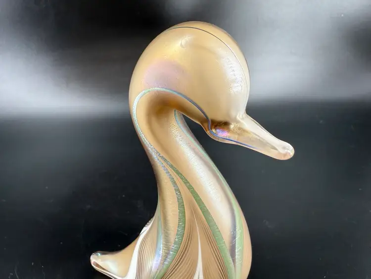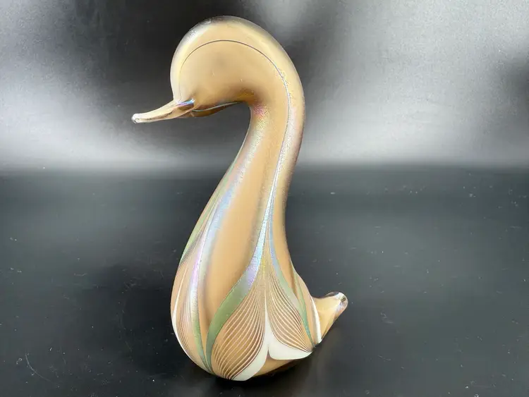This duck figurine is signed Abelman. It measures approximately 5” tall. There are no chips or cracks.