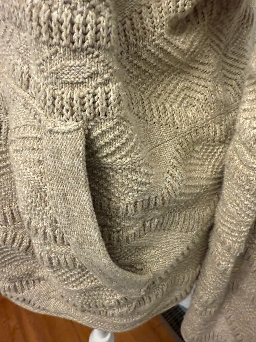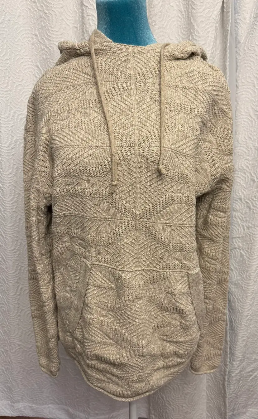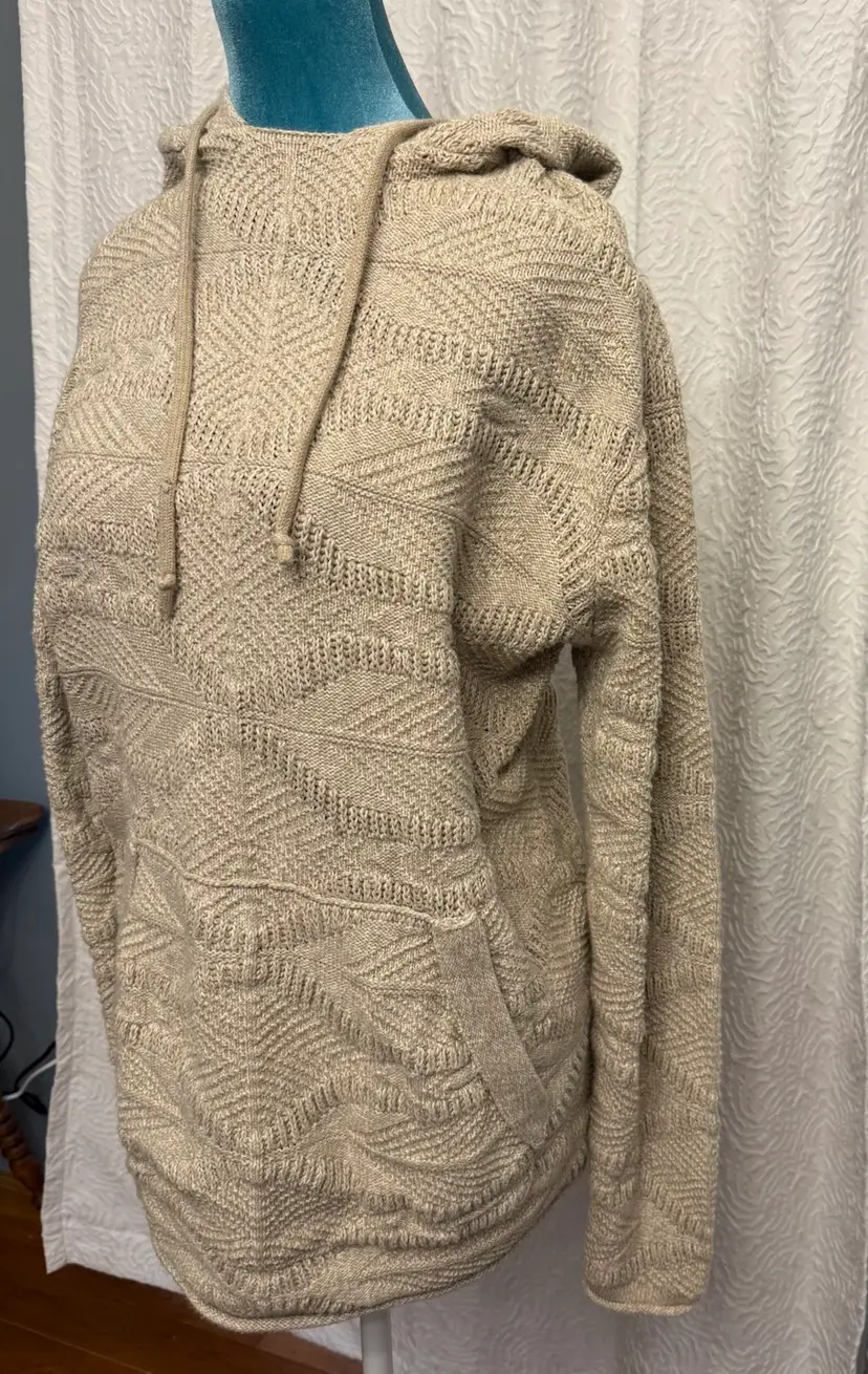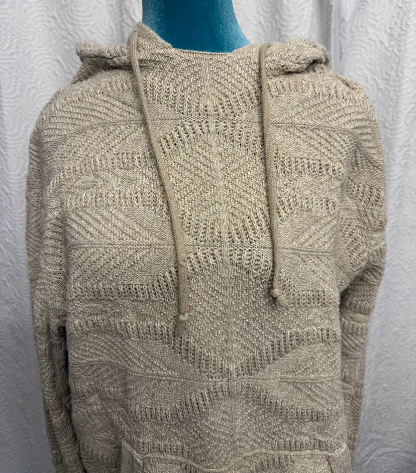 Stylish knit hoodie with a cozy design. Features a drawstring hood. pit to pit is 22"pit to pit is 22 " from shoulder to the bottom of the sweater is 26 1/2 "from armpit to the end of the sleeve is 19 1/2" nice heavy duty sweater I would wear it as a coat Hooded.