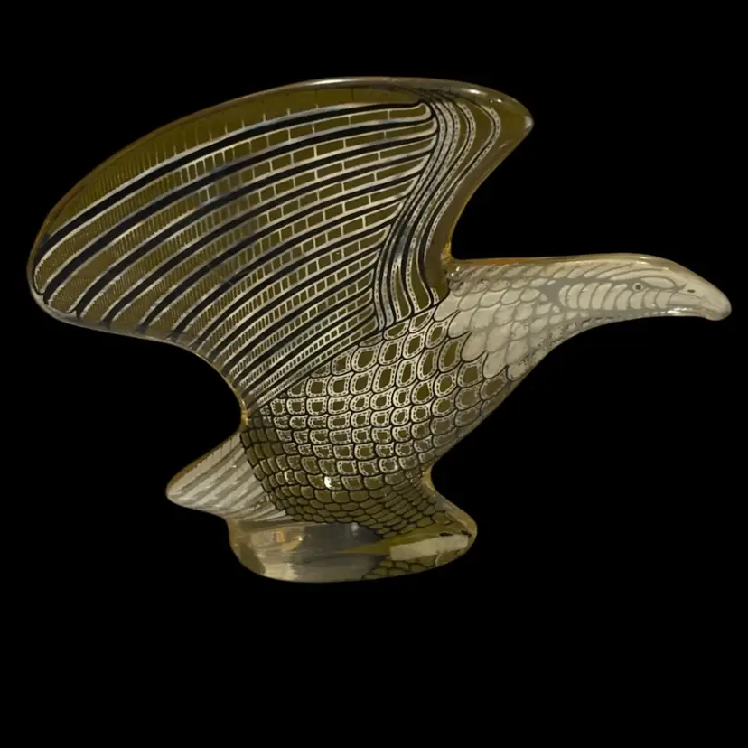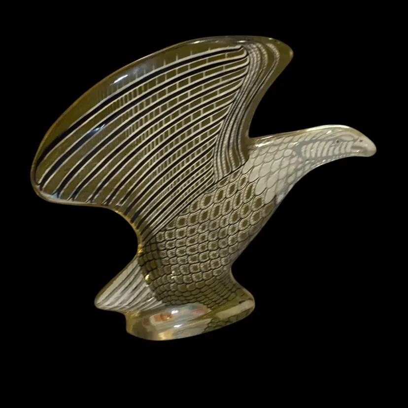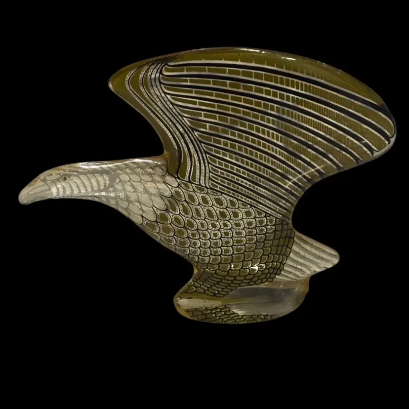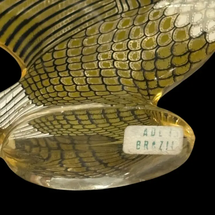 Vintage AP lucite eagle, made in Brazil sticker on base. Has a few flea bits on base as seen in photos, some scratches to surface, but in overall fair condition. 4.25x7/8x3.5โ