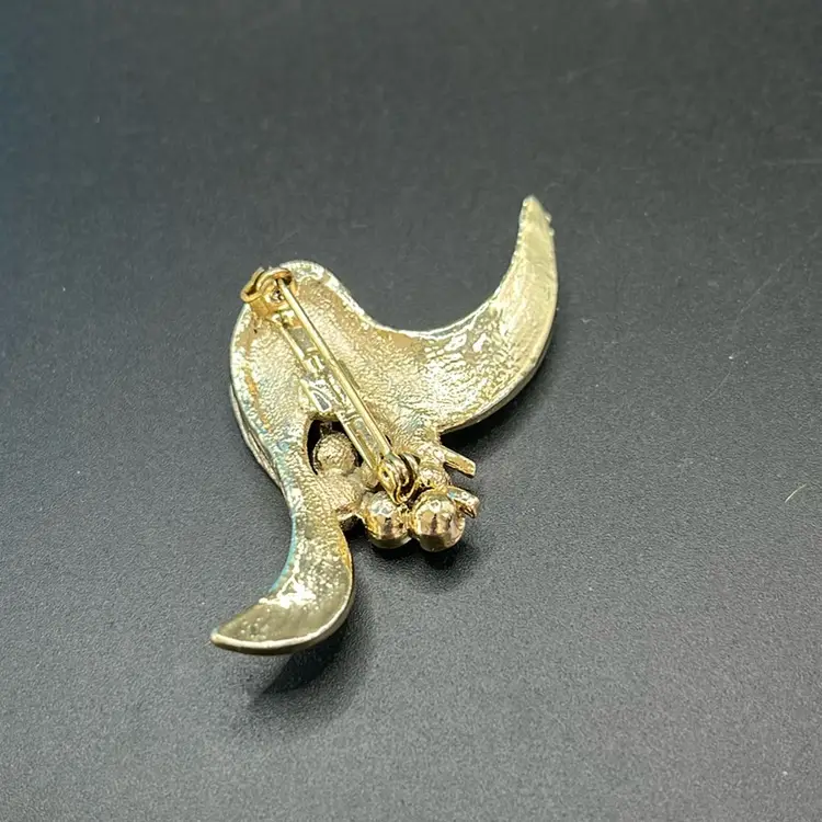 Abstract Floral Brooch, Gold Tone With Rhinestones 2 1/2” Wide
