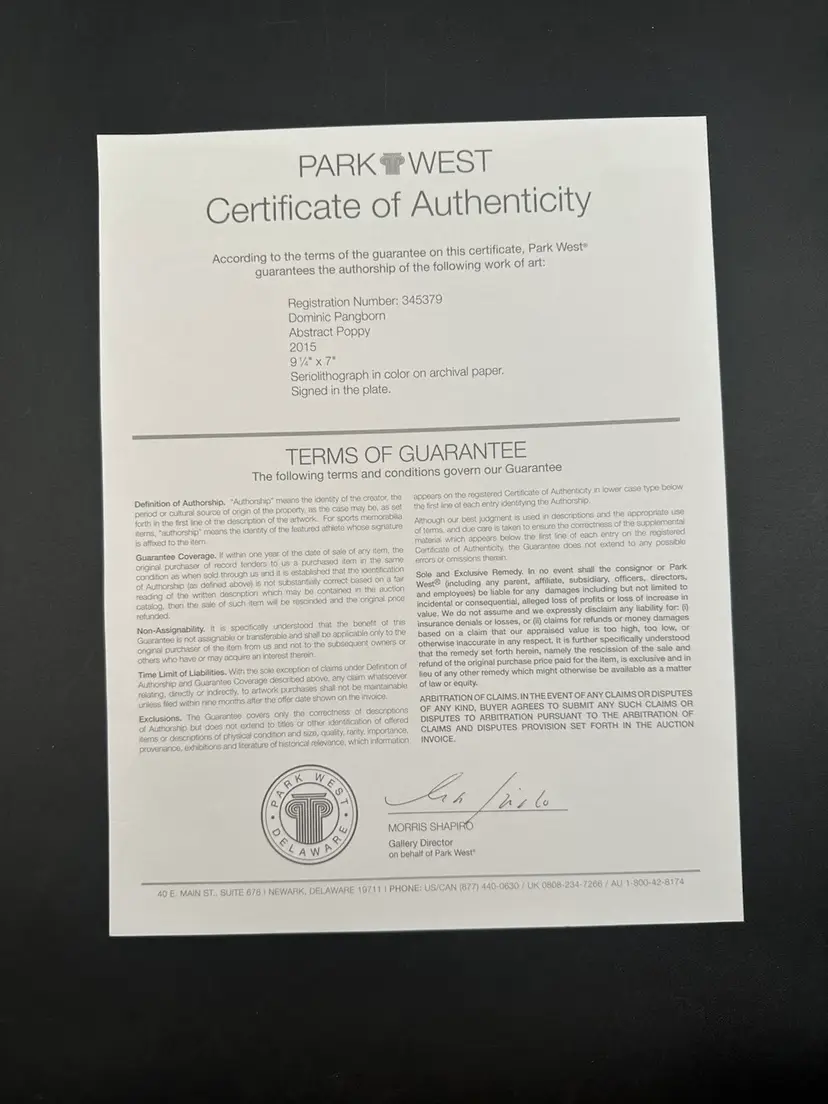 Excellent condition, no tears/marls. Included all the bells and whistles including proof of what it is and a beautiful print!