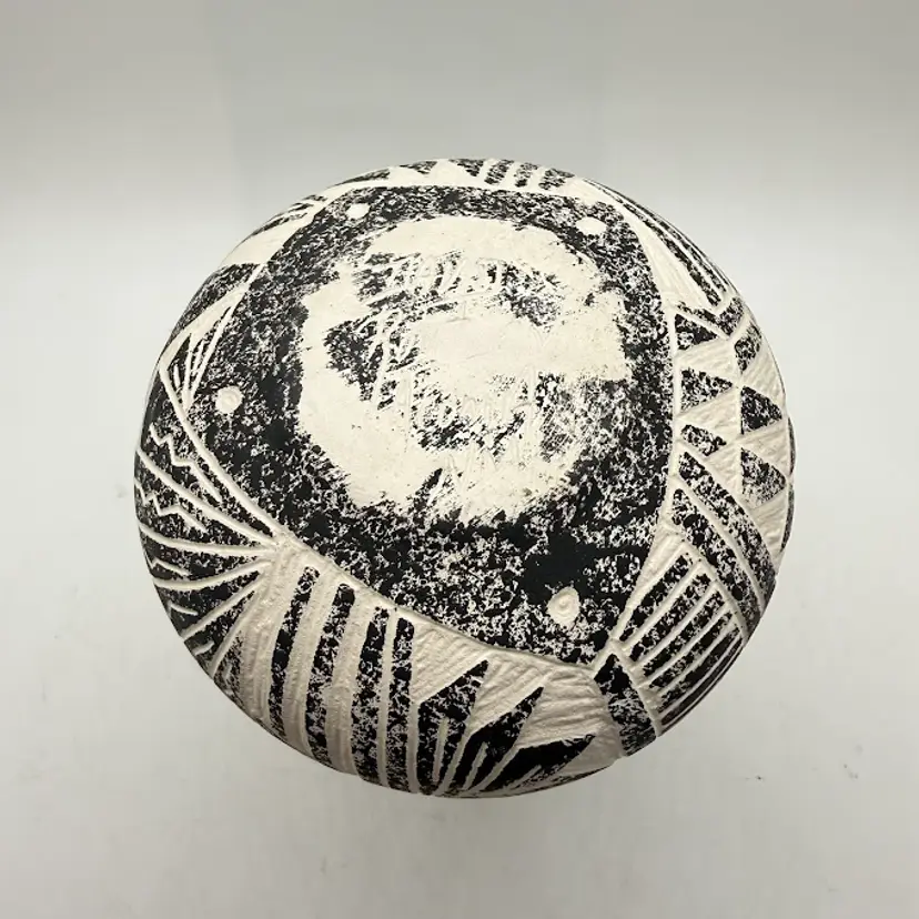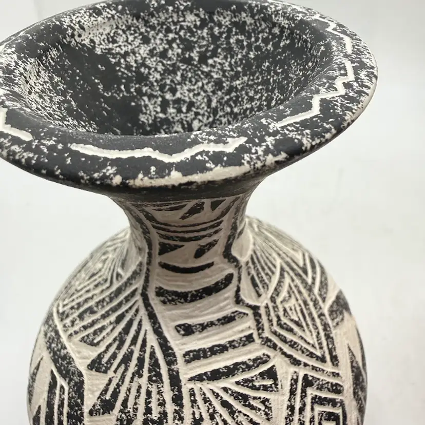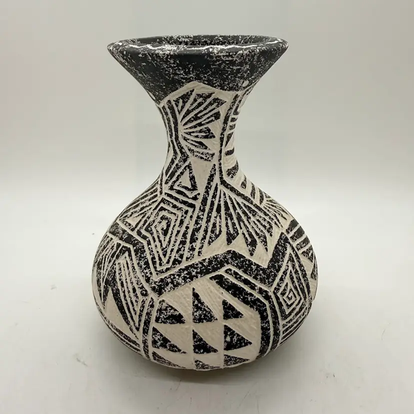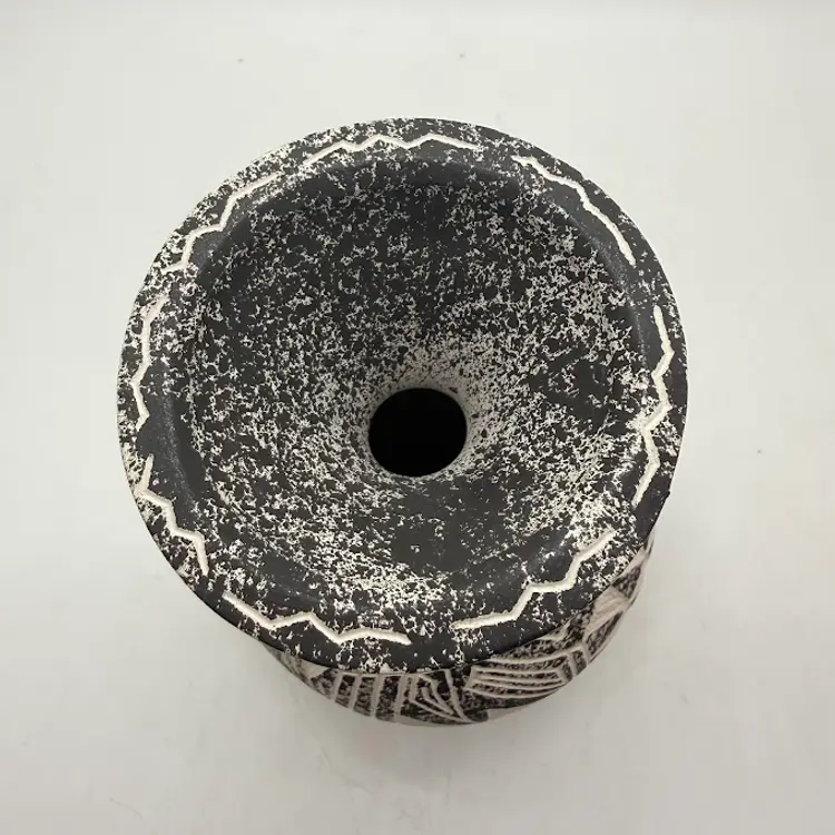 Keywords: Native American, New Mexico, Handmade, Pottery, Carved, Etched, Geometric, Folk Art, Traditional, Primitive, Medium, Home, Decor, Decorative, Accent, Splatter, Marked, Signed, Weed Pot, Seed Pot, Flower, Floral, Gift, Present