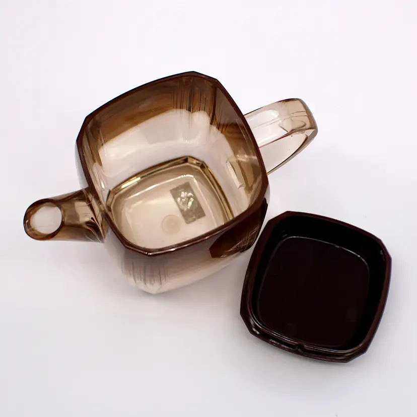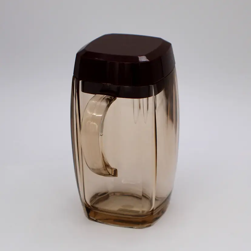 Super Cute Vintage Acrylic Creamer With Brown Lid Made In Japan. Measures 5" tall x 4.5" wide (from spout to handle)