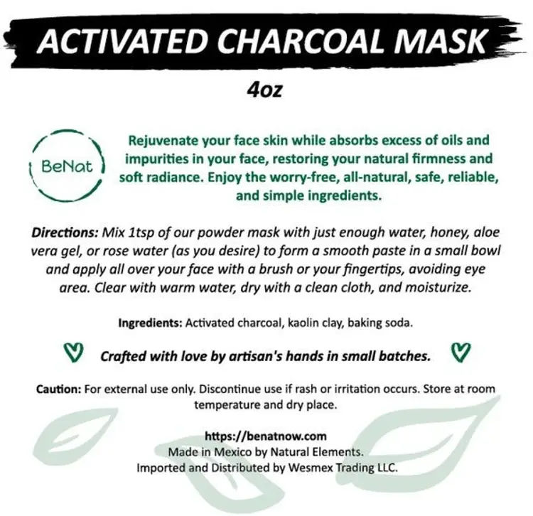 Rejuvenate your face skin while absorbing excess oils and impurities in your face, restoring your natural firmness and soft radiance. Crafted with love by artisans' hands in small batches. HAVE A SMOOTH SKIN: Our face mask acts as a deep cleansing scrub and facial mask to visibly minimize the appearance of pores, absorb excess oil, and provide a gentle exfoliation for a radiant, fresh appearance. DETOX & DEEP CLEANING: A loosely porous structure increases the absorption capacity. It reduces the skin's pores and cleans them thoroughly, effectively clearing skin problems like blackheads and wrinkles. NATURAL INGREDIENTS: This face mask mainly consists of charcoal, which has a loose, porous structure that absorbs stubborn dirt from the pores and removes excess oil from the skin. This reduces pores and strengthens the skin, keeping it supple and tender. MULTIPURPOSE: It helps reduce computer radiation's effect on the skin, gives vitality to dull and uneven skin, and makes it firmer.