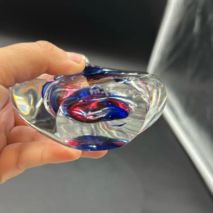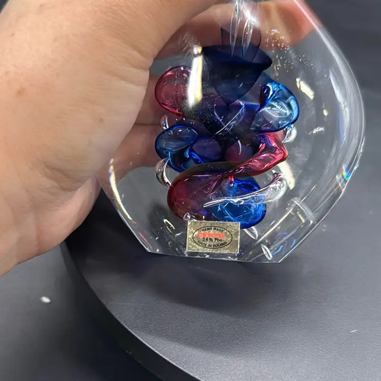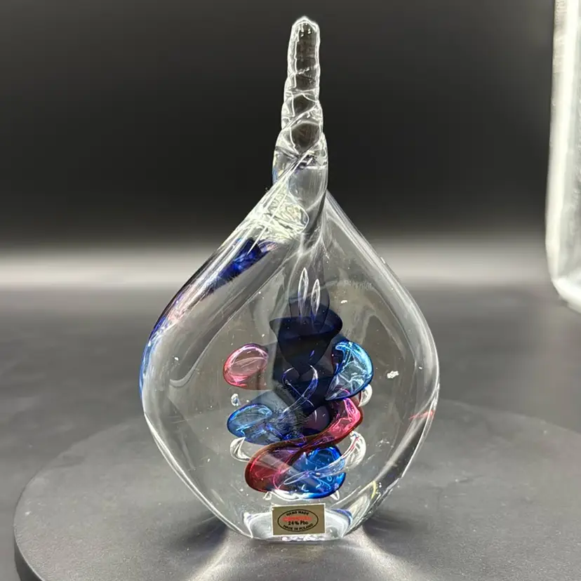 Adam Jablonski Art Glass Crystal Teardrop Twist Top Paperweight Poland Signed