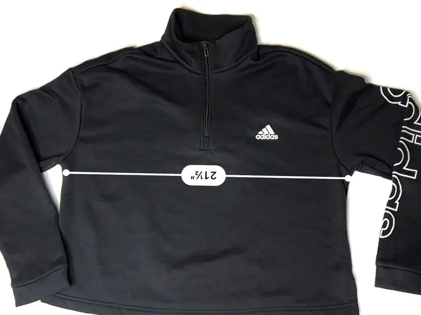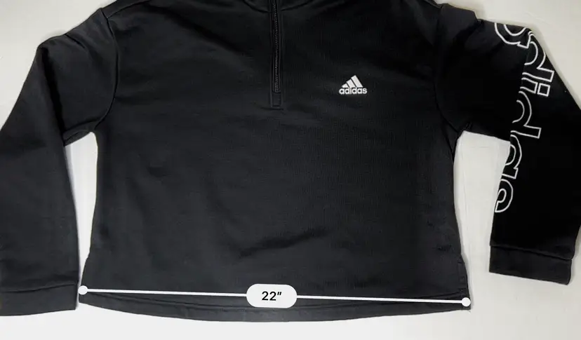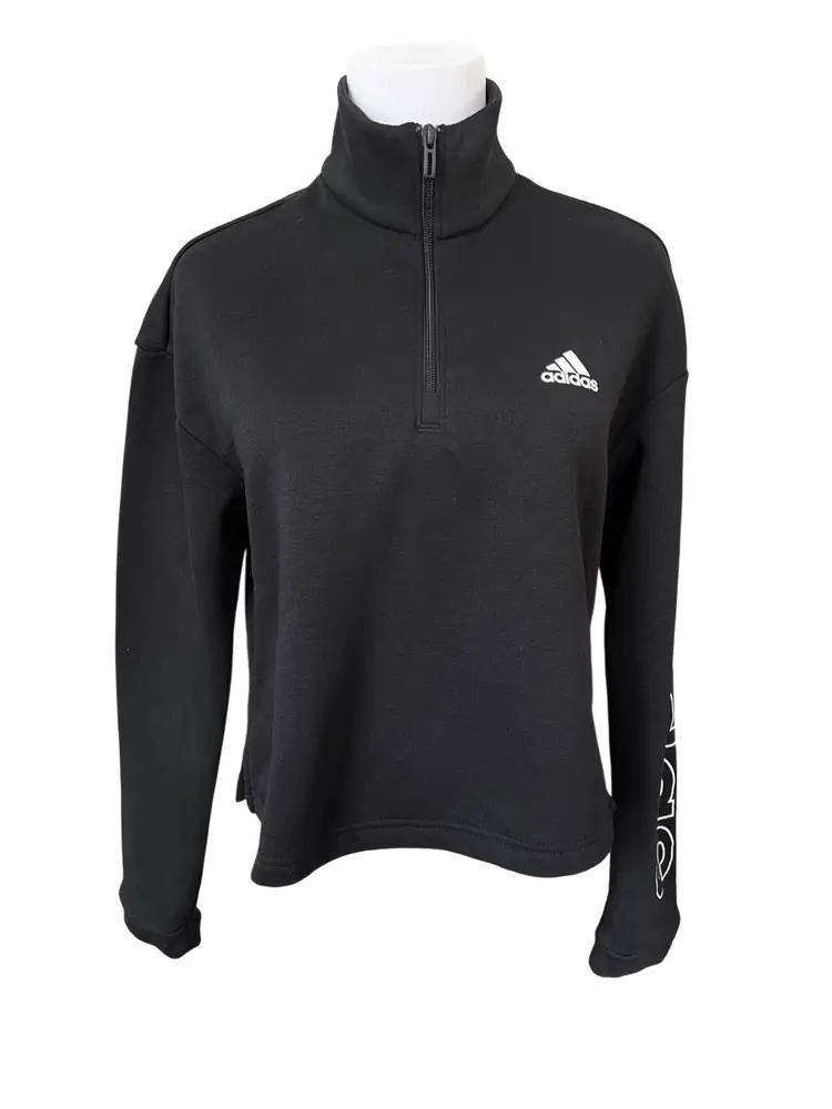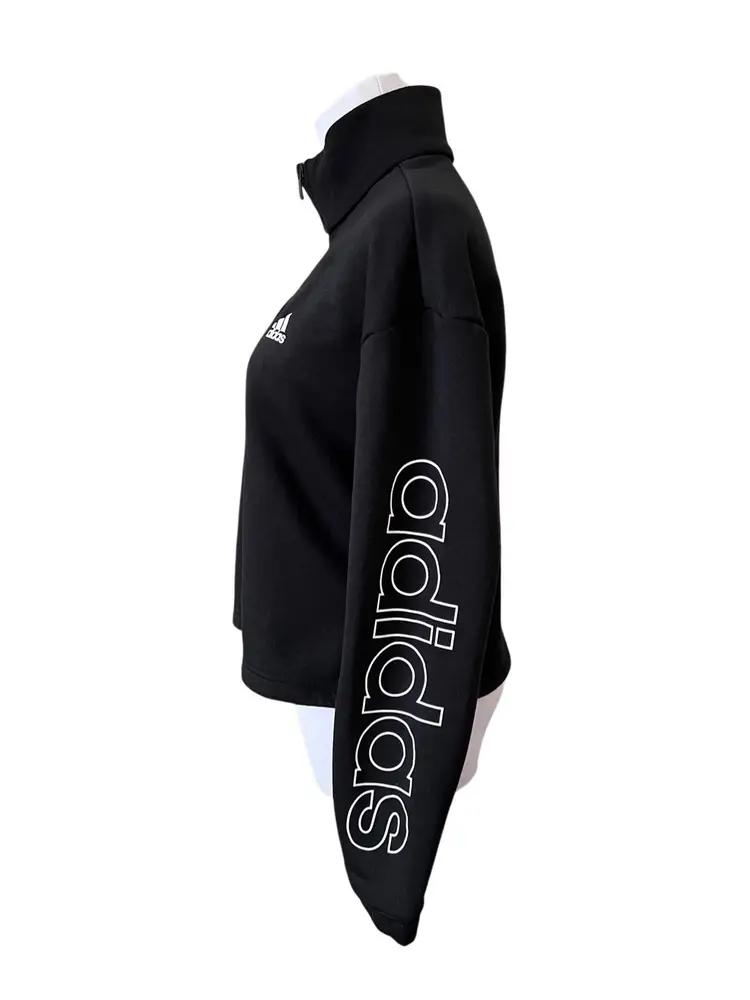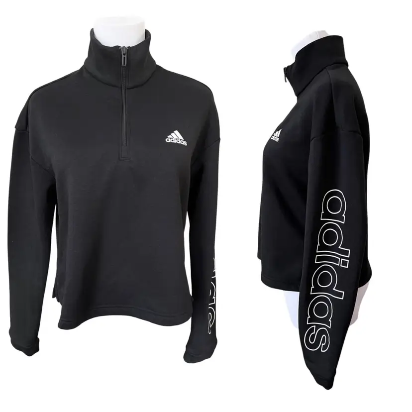 Adidas H09267 Essential Loose Fit Cropped Top Black Logo X LARGE 1/4 Zip High Neck. Cotton blend. Item in excellent gently used condition. No known rips, tears, holes, stains or defects.
