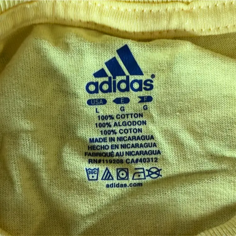 Large yellow and blue Adidas Michigan Wolverines t-shirt.