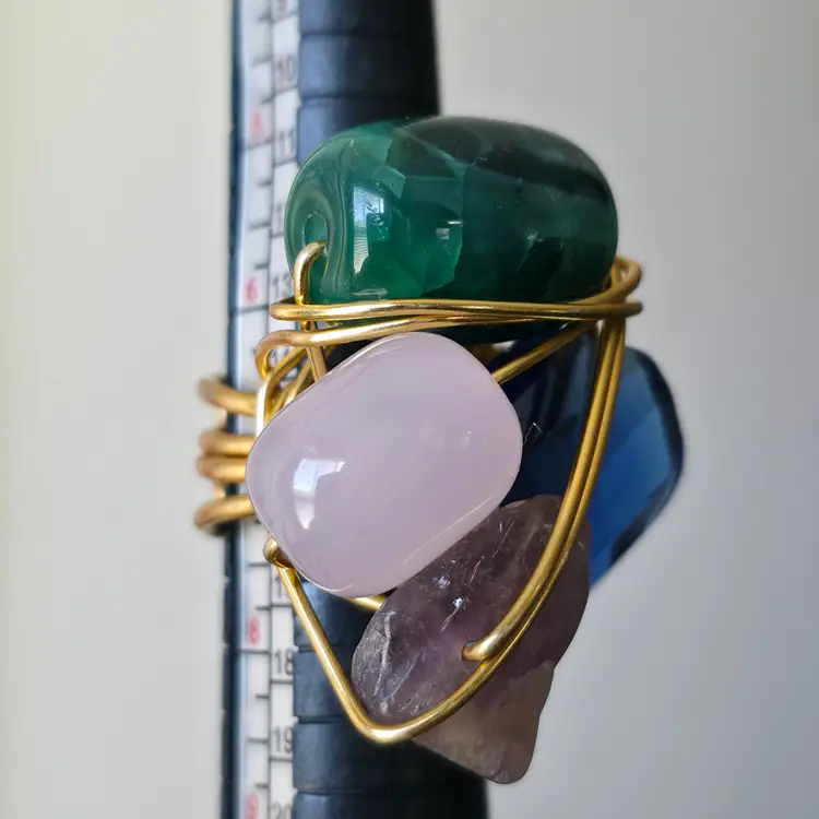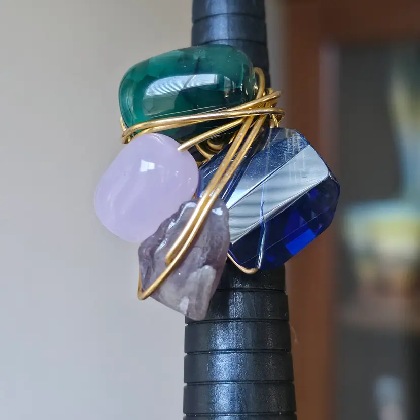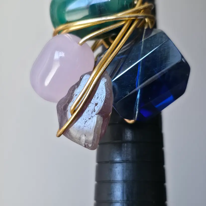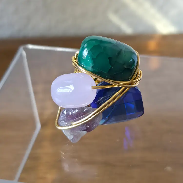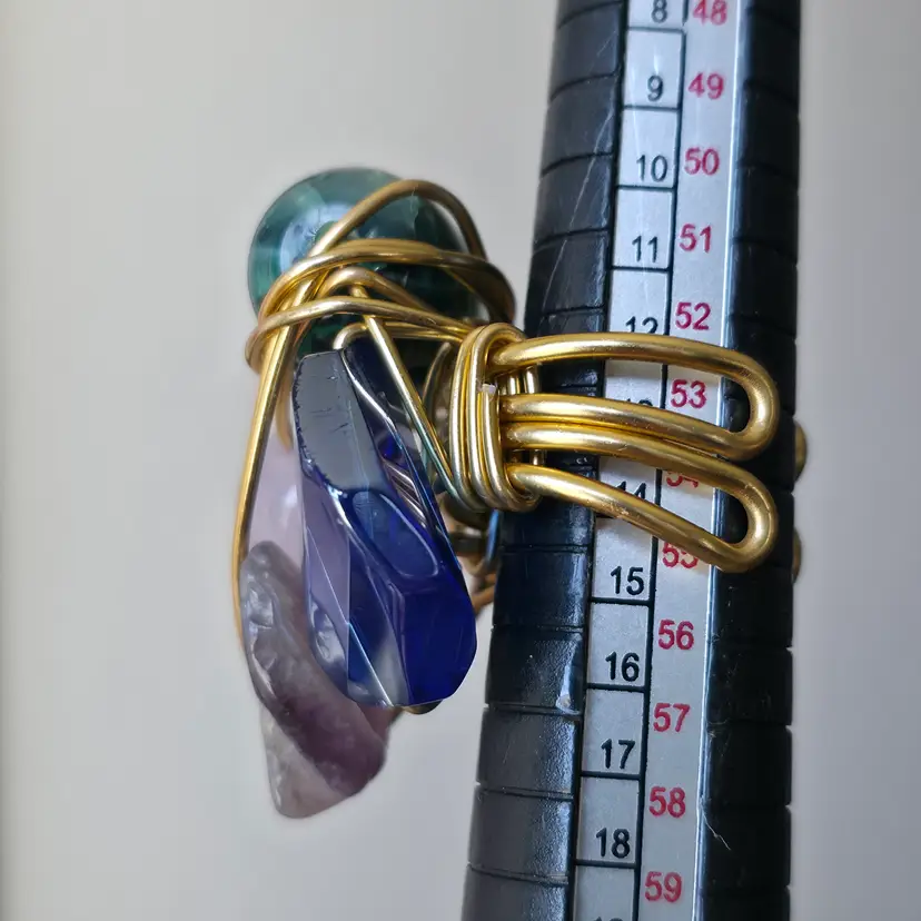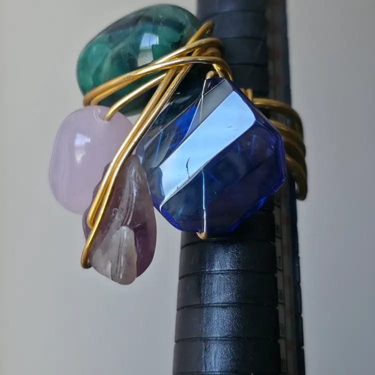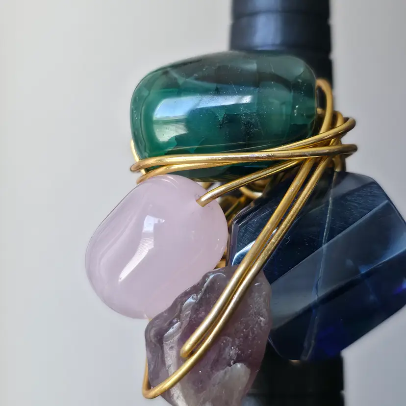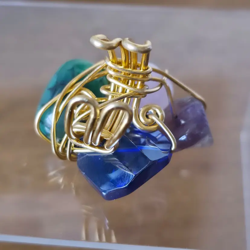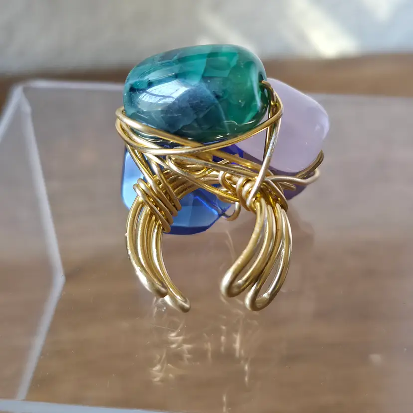 Please review photos carefully prior to purchase Measurements are approximate Scratches on blue glass Natural inclusions to stones Has some weight