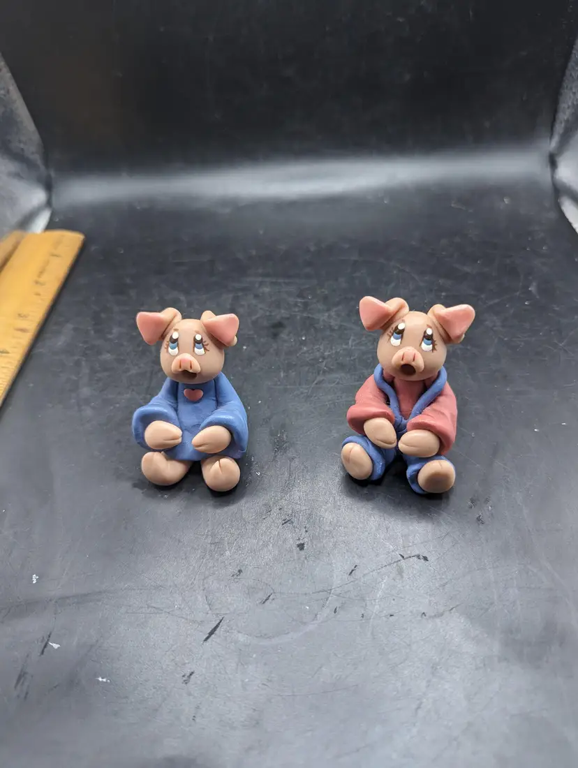 Add a touch of whimsy to your collection with this pair of adorable piglet figurines. Perfect for animal lovers and collectors alike. Please see all pictures for condition and measurements.