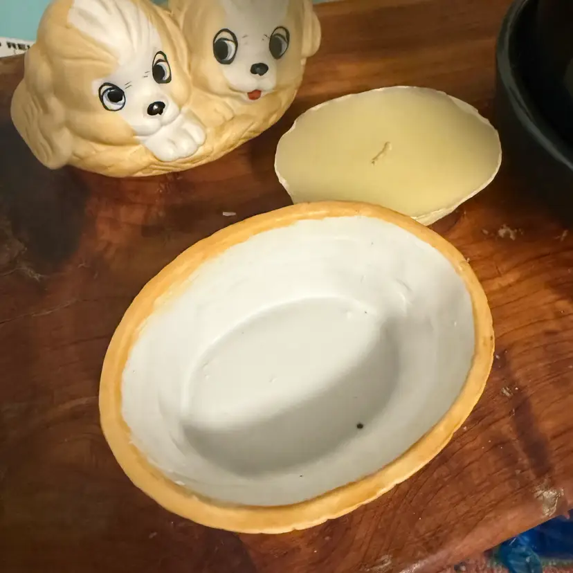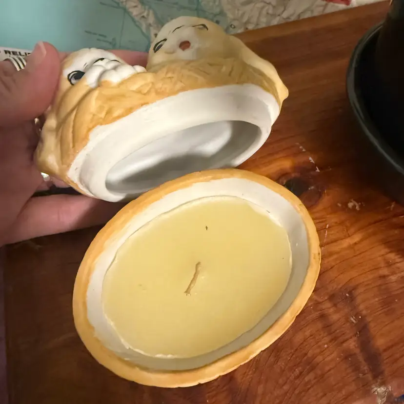 Excellent vintage condition. Has a candle inside that comes out easily.
