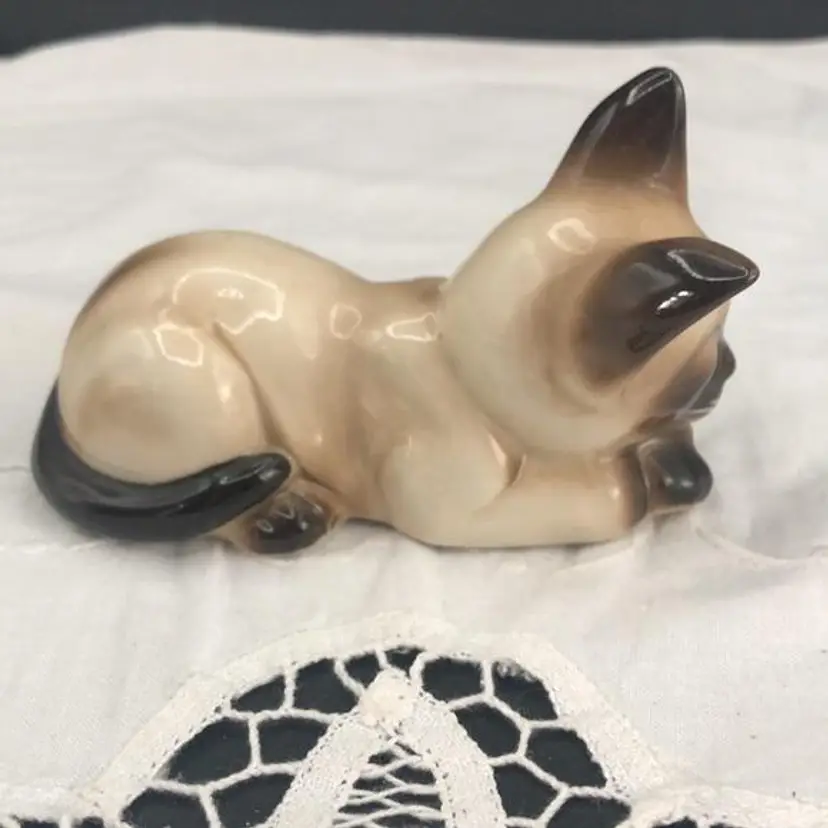 Adorable Vintage Siamese Cat Figurine N C Cameron & Sons Made in Korea Vintage from the 1970s In very good condition. No Chips or Cracks Measures about 4.25" long 2.5" High. Cute sleepy kitten laying down. Offers Welcome.