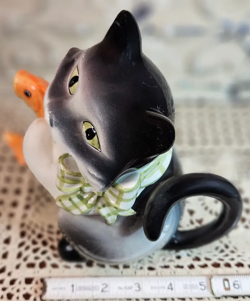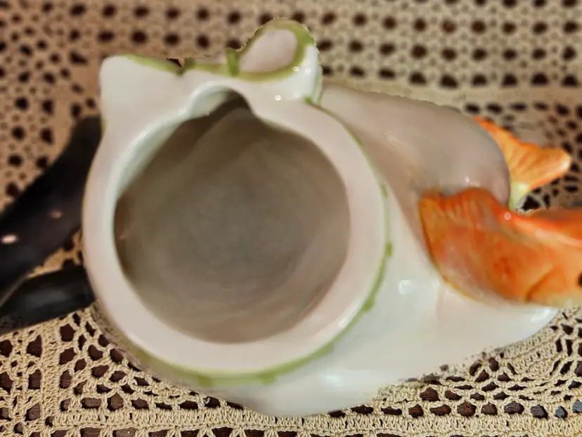 This adorable teapot is in great, vintage condition, with no appreciable scratches or cracks. There is a broken piece from the bottom of the lid (see last photo) which can't be seen when the lid is on. There are also some spoon scratches on the inside of the teapot. Measurements are depicted in the pictures of the item or listed in the description of the item. Please review the photos, as they are part of the item description. Photos will always reveal noticeable defects, as will my description. Any white “blemishes” that are not pointed out in this section are from the lighting that I use for my photos. If you need clarification, please reach out to me.