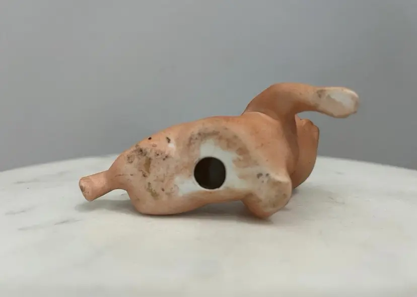 No chips or cracks. Several areas of discoloration as shown. Measures approximately 2.5” tall and 3.75” wide. Message me with any questions.