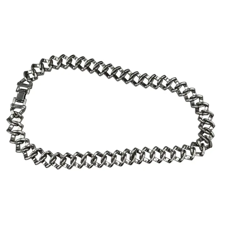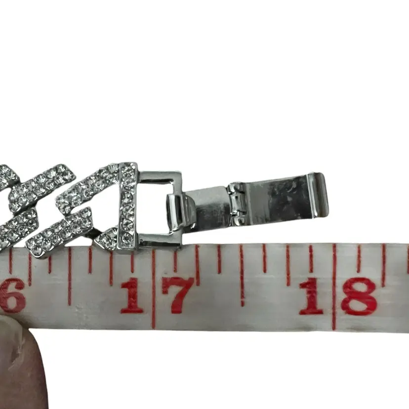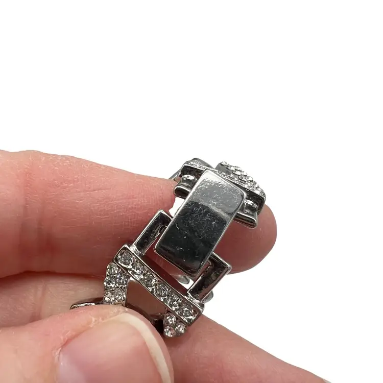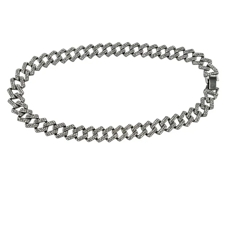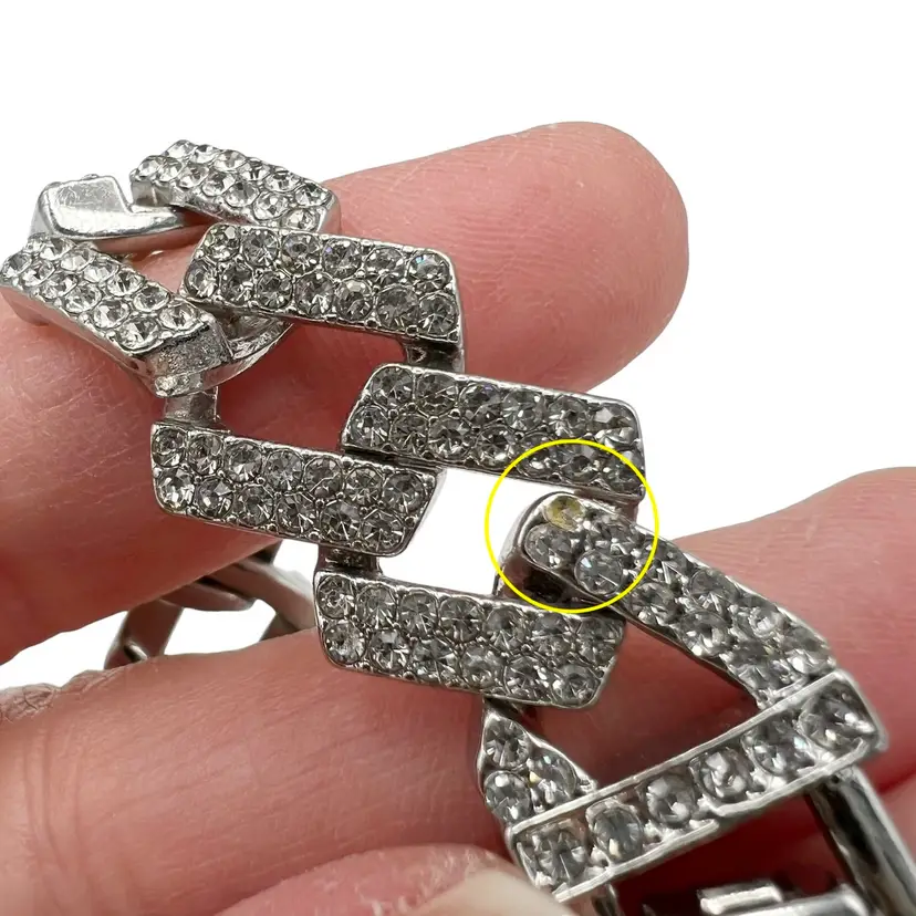 Adornia Silver Tone Edgy Crystal Chunky Cuban Chain Necklace. In good condition: light scratching to the clasp and one crystal rhinestone is missing near the clasp. Foldover clasp. Pavé Crystal rhinestones all over. Comes with a branded bag.
