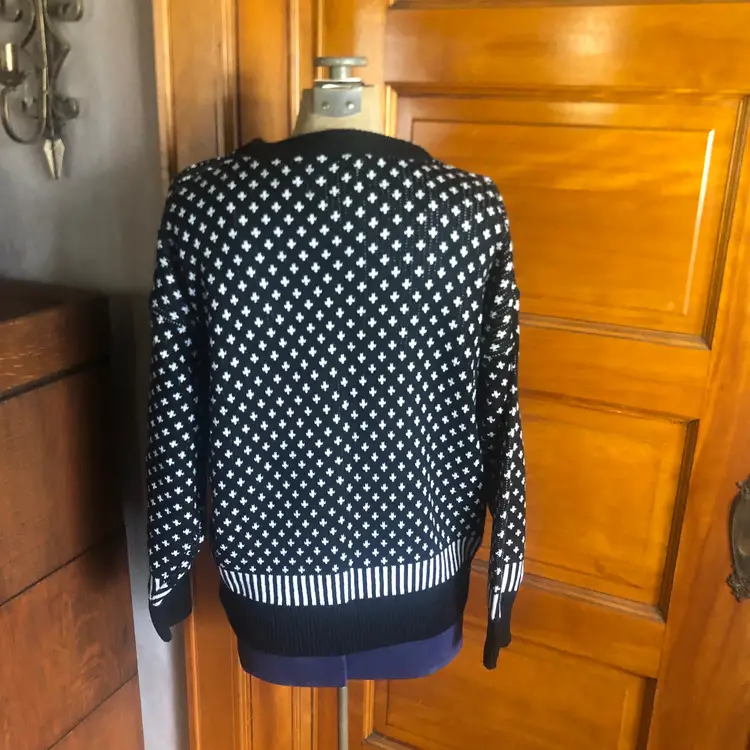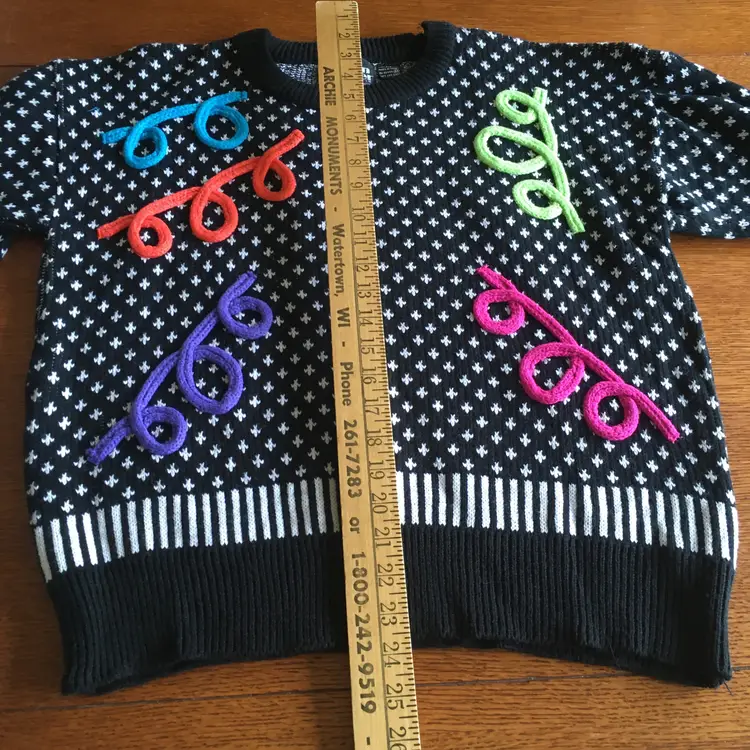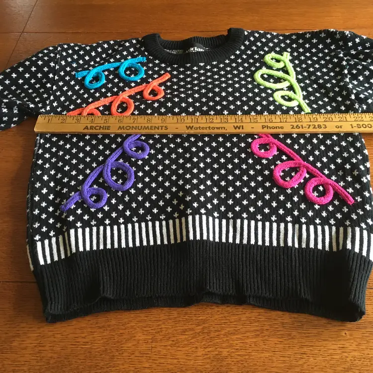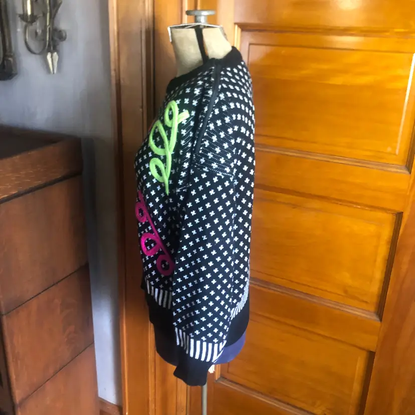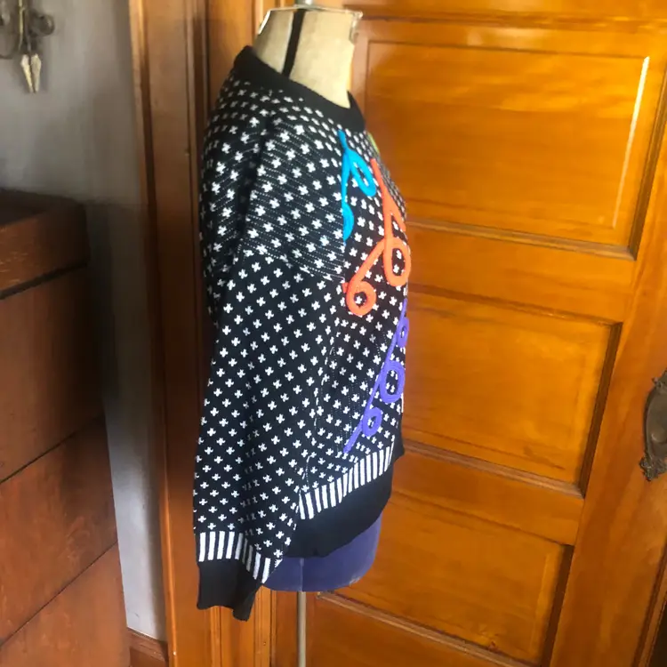 Flashback to funky town with this eye-catching vintage sweater featuring a classic pattern with a twist of colorful confetti. Perfect for making a bold statement while staying cozy!