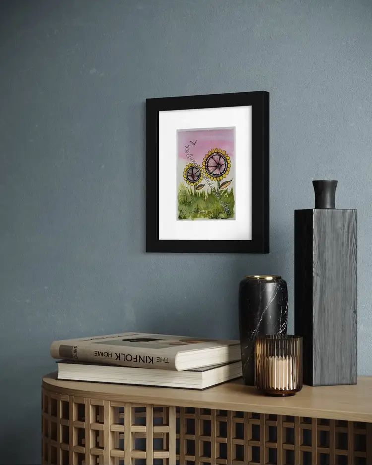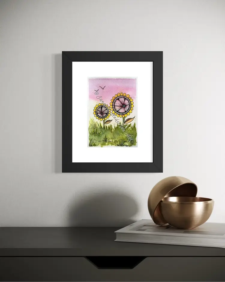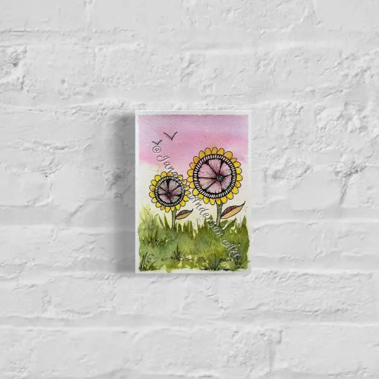 • 7”x5” original watercolor and mixed media painting on 100% cotton watercolor paper. • Sealed and protected with two layers of archival varnish. • Ships flat. • Frames and matting not included; for reference only. • All original paintings are signed, dated and come with a signed Certificate of Authenticity.