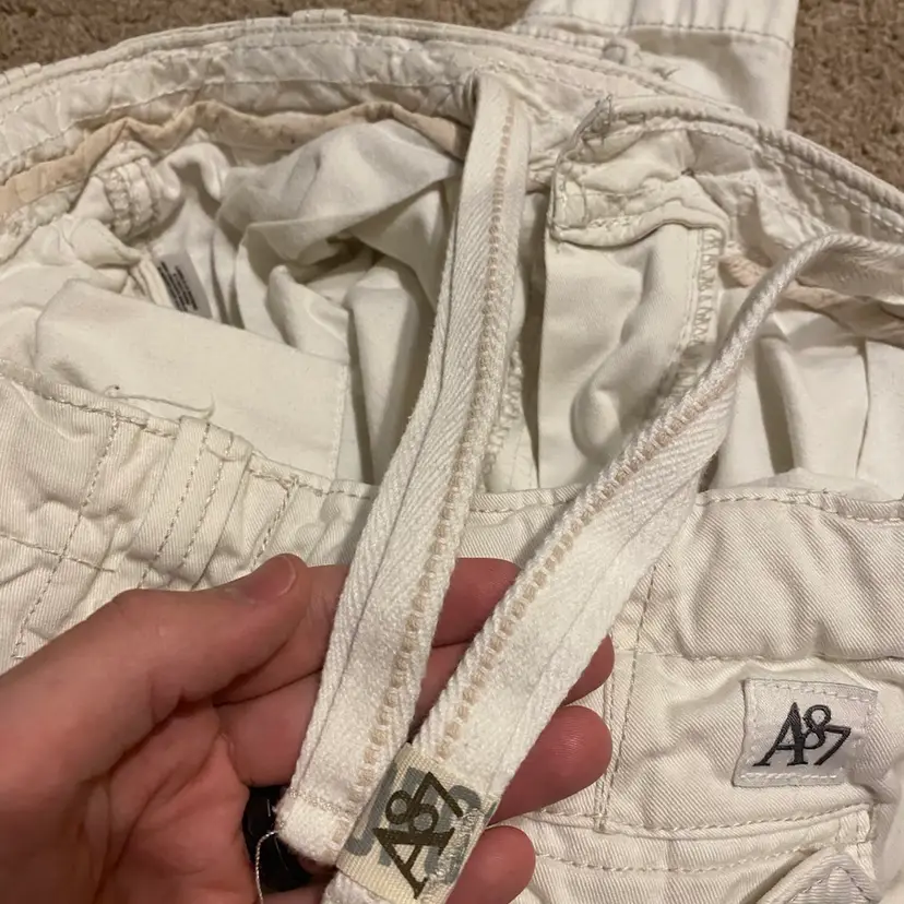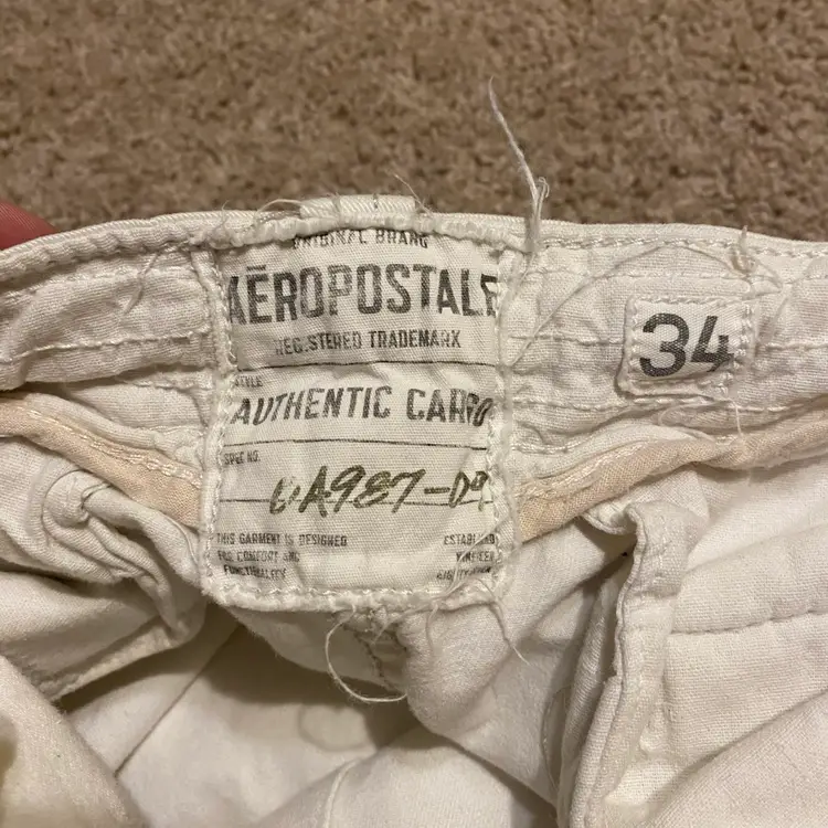 You are purchasing one pair of Men's Size 34 Waist White Cargo Shorts by Aeropostale from 2011. These Shorts are in overall good condition with no rips or holes. Just see final two images for very faint areas of discoloration on the back side. Only noticeable when thoroughly looked at.