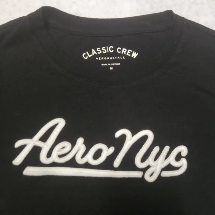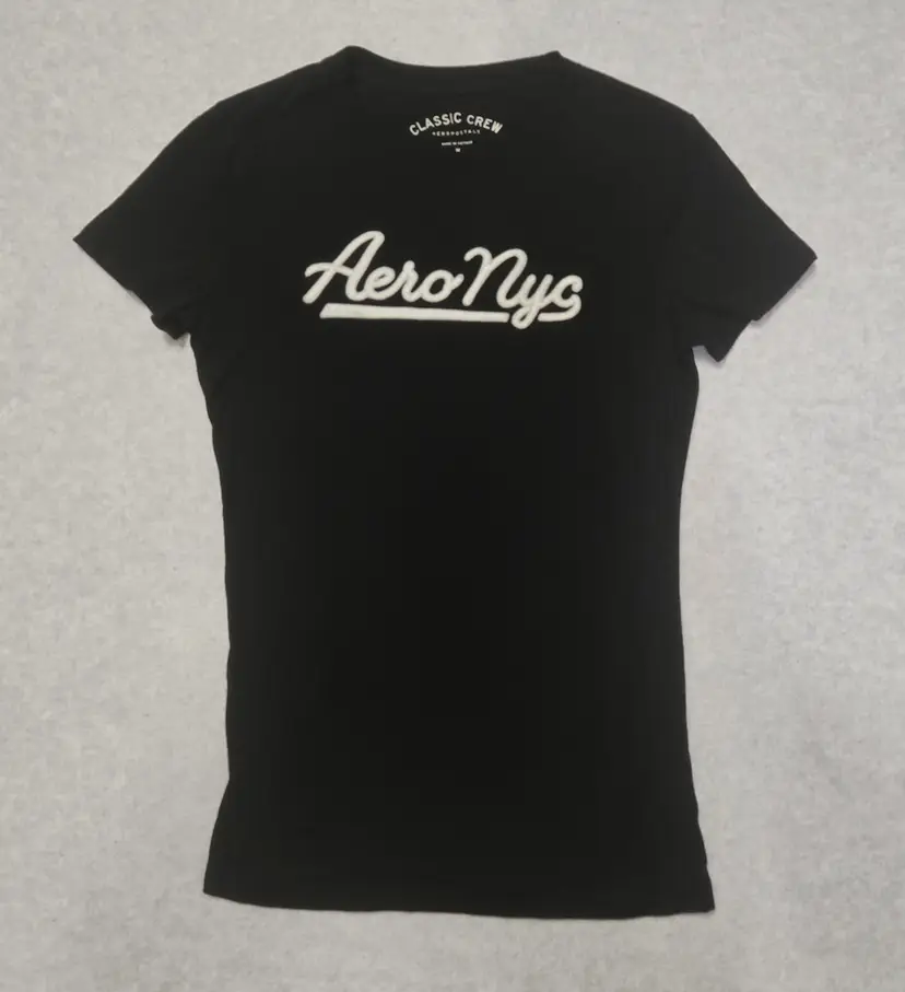 Aeropostale T-Shirt Womens M Black NYC Script Short Sleeve Top
