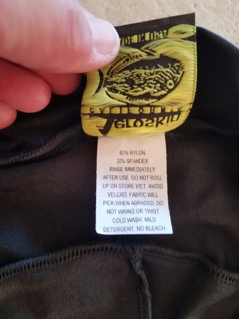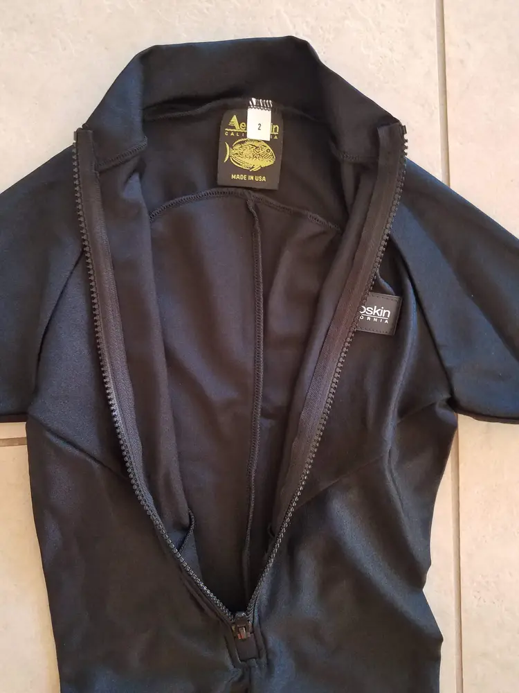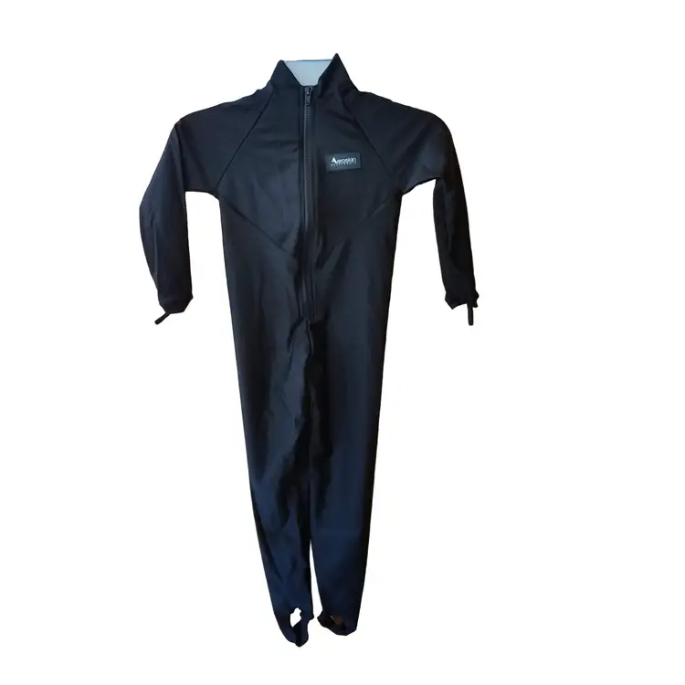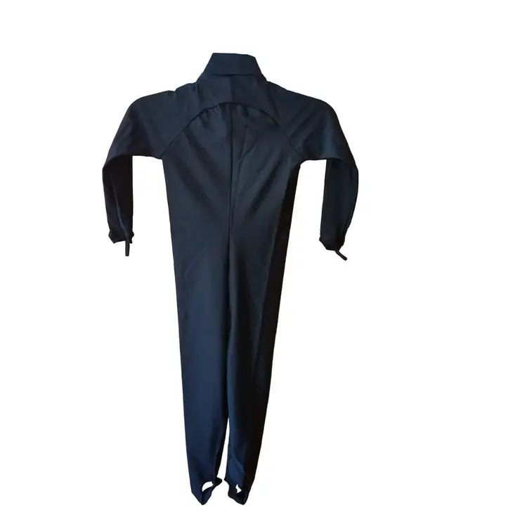 ~ All BLACK ~ Nylon spandex construction ~ Front zipper ~ UV Protected fabric ~ Elastic thumb bands to keep arms in place ~ Stirrups for feet to keep legs in place ~ Neutral buoyancy ~ Great for scuba diving, swimming, wind surfing, water aerobics, water skiing, jet skiing, kayaking, triathlon