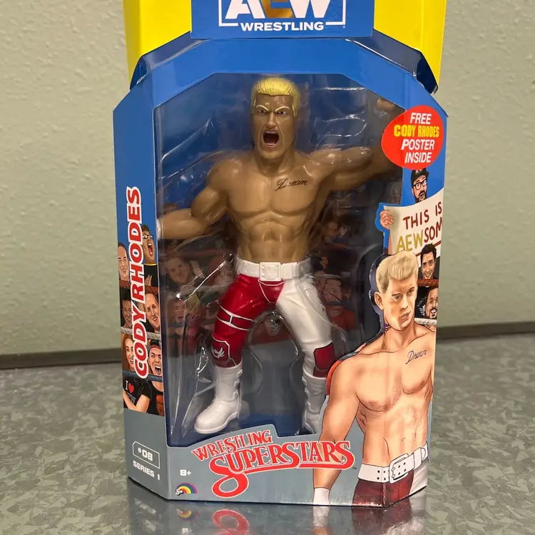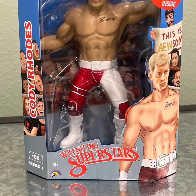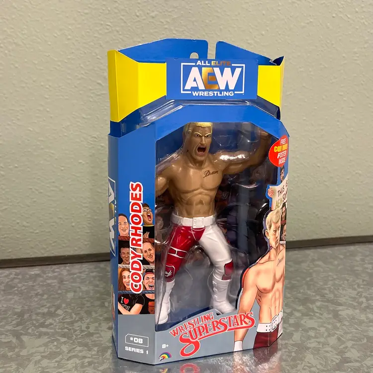 This AEW Unmatched Series 1 Cody Rhodes LJN Figure is a must-have for any wrestling fan. The 1:12 scale figure is made of high-quality ABS plastic and comes with a pair of red pants, making it a perfect addition to your action figure collection. The figure is an original, licensed reproduction by Jazwares and is boxed in its original packaging, making it a great gift for any collector.