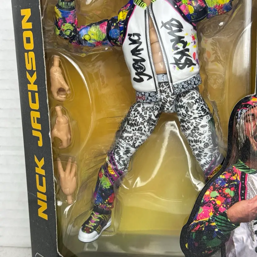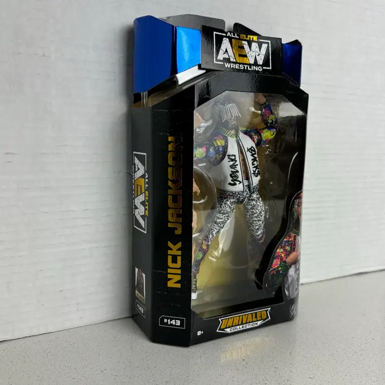 This AEW Unrivaled Series Nick Jackson Action Figure Exclusive #143 Young Bucks is a must-have for any wrestling fan. Made by Jazwares, this 1:43 scale figure is part of the Unrivaled Exclusive #143 series and features Nick Jackson, a member of the Young Bucks tag team in AEW.