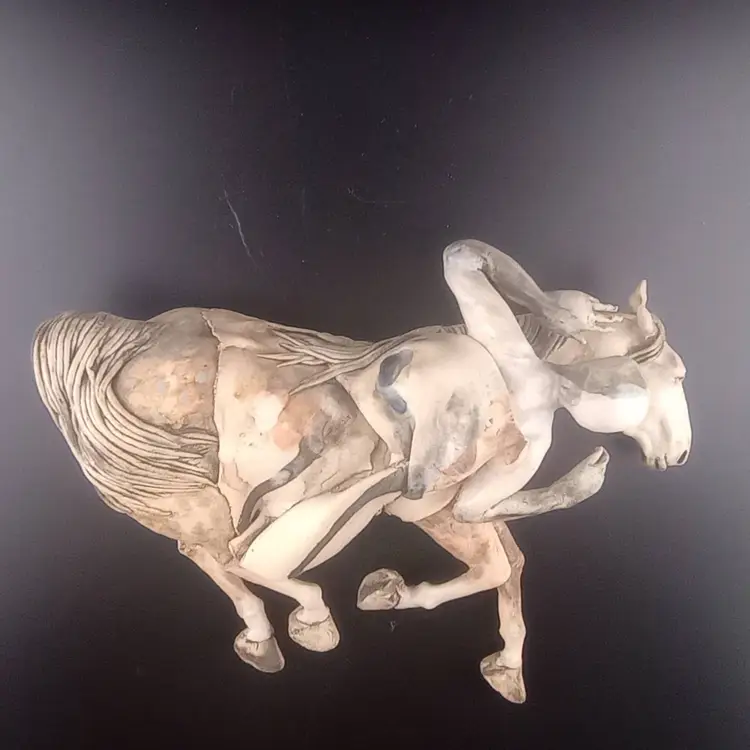 This piece has two companion horses--both of which have damage. On one, the horse is missing its ears. The other has several breaks, legs and head, demonstrating just how delicate this piece is. Because of the damage, I am advertising and pricing this for just the one piece that is in tact. However, I will send all three pieces to the buyer.