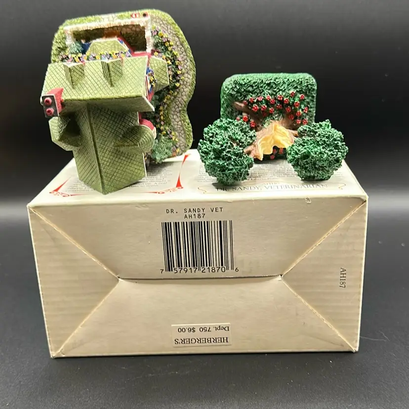 House 3” tall, 3” by 3”. Tree is 2.25” tall, 2.75” by 1.75”.