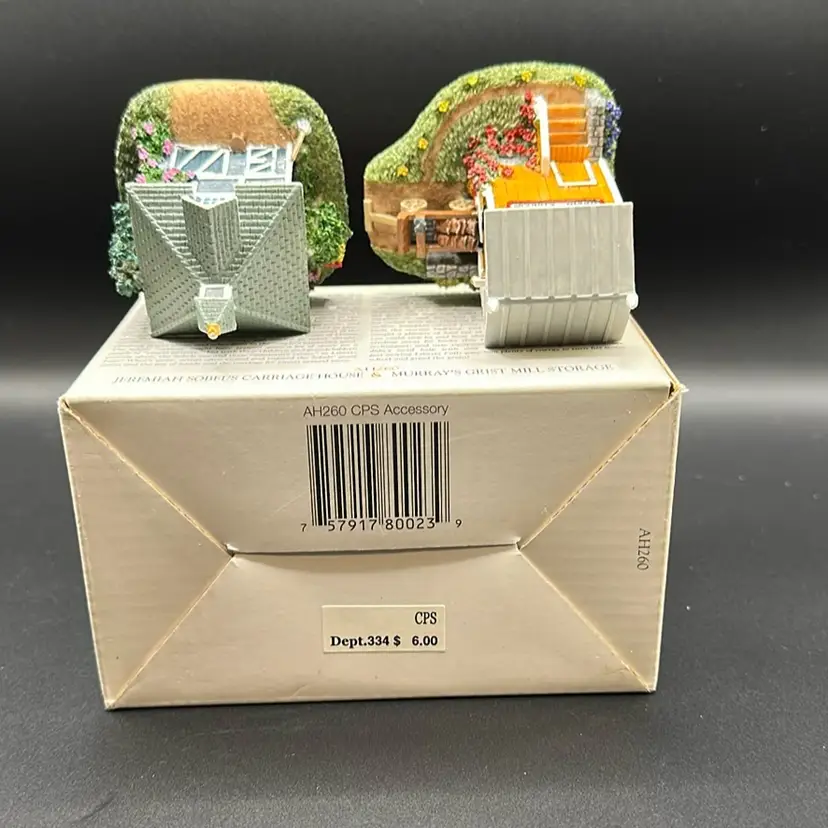House is 2.25” tall, 2.25” by 2.25”. Mill is 2.75”, 2.5” by 2.25”.