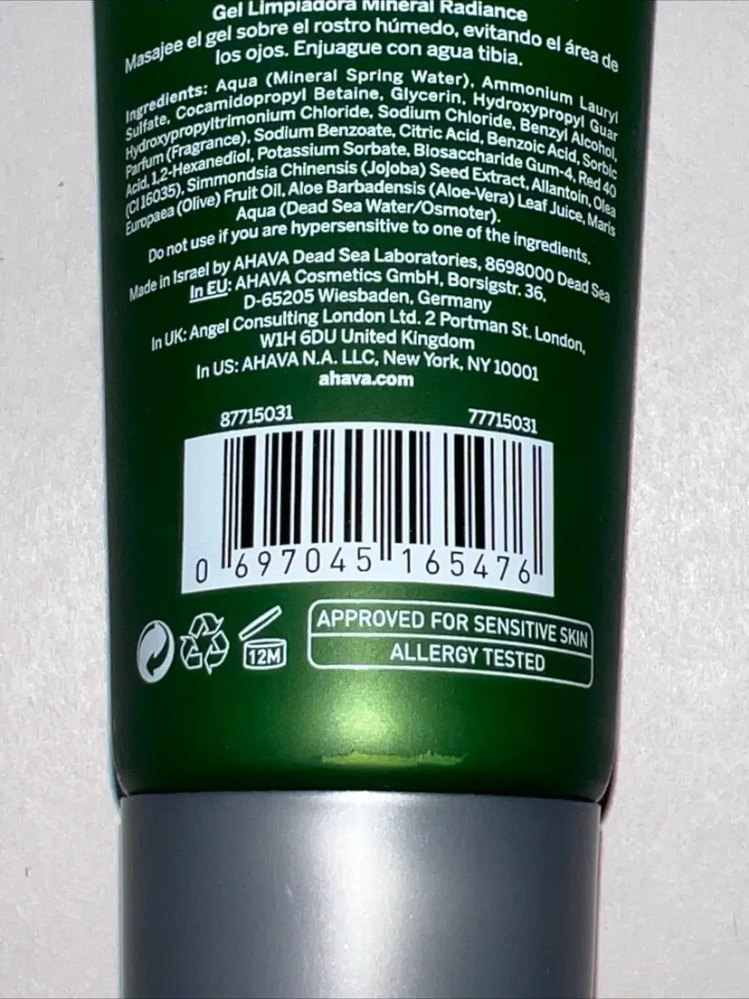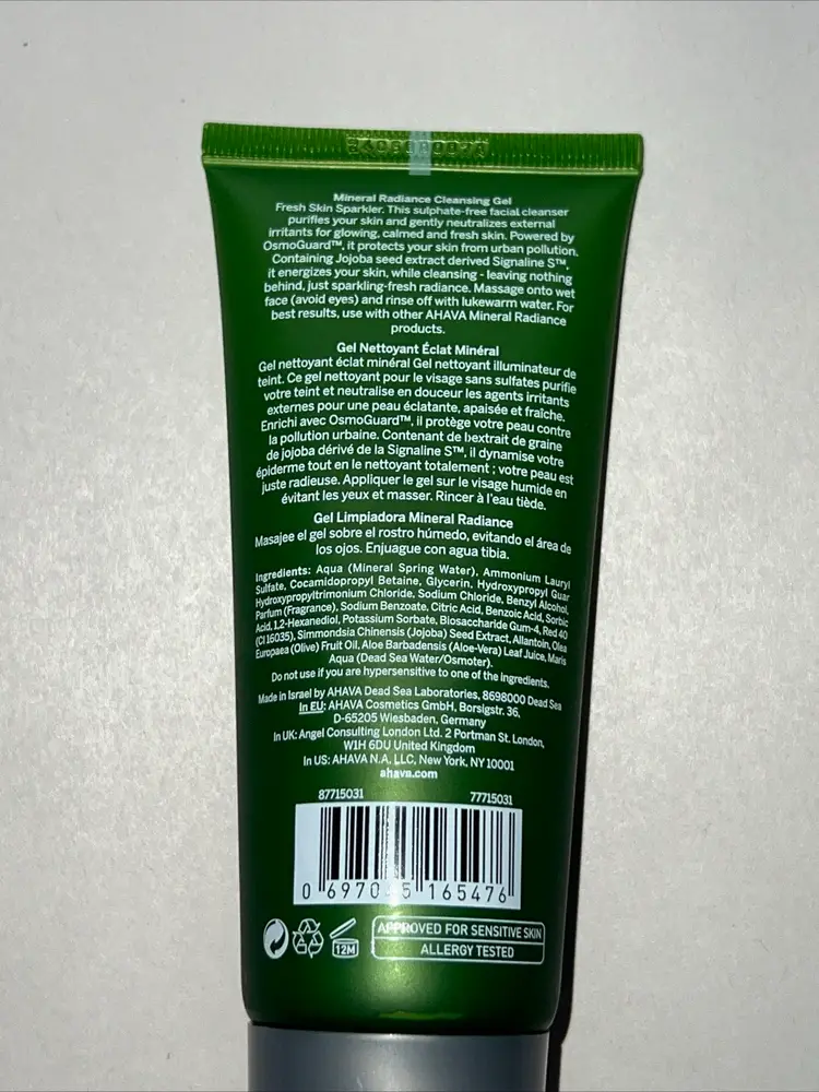 AHAVA Mineral Radiance Cleansing Gel, 3.4 Fl Oz New Sealed Fab Fit Fun Face.