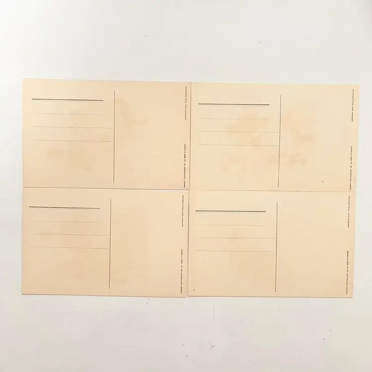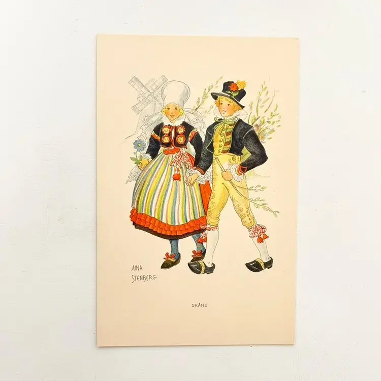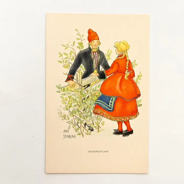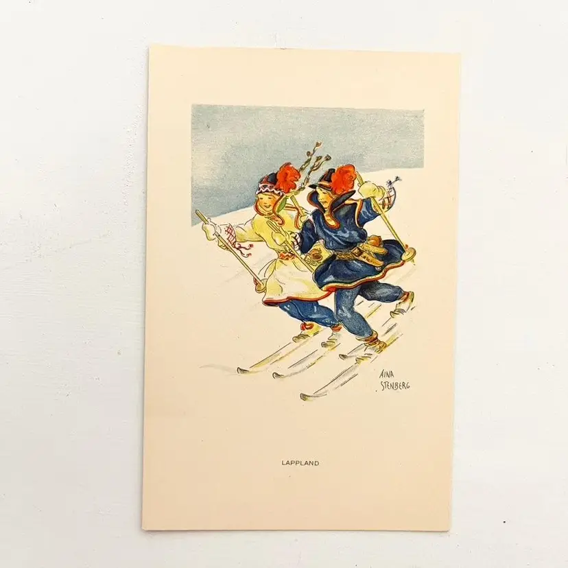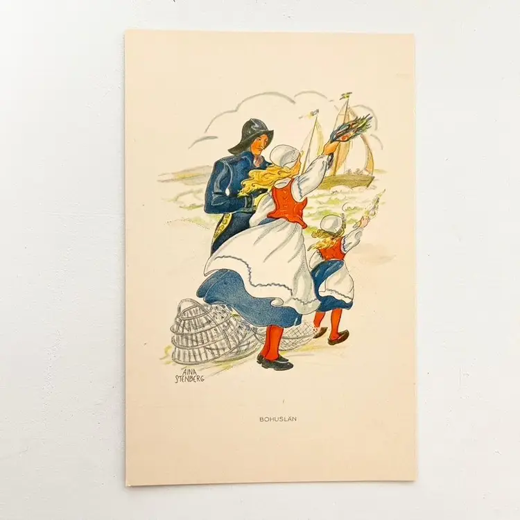 Aina Stenberg Postcards Sweden Provinces Lappland Vastergotland Bohuslan Signed 4 Antique Postcards Made in Sweden Copyright Eskil Holm, Stockholm Condition: Wear on the corners. The back sides are tined, discolored. The Bohuslan card has a crease on the bottom left corner. Measures 5-1/2 inches x 3-1/2 inches Packaged in a plastic sleeve inside a rigid envelope Visit my store to see more vintage ephemera, advertising, novelties, gifts, estate sale and yard sale finds https://district.net/u/finderspickerspaper SKU B21