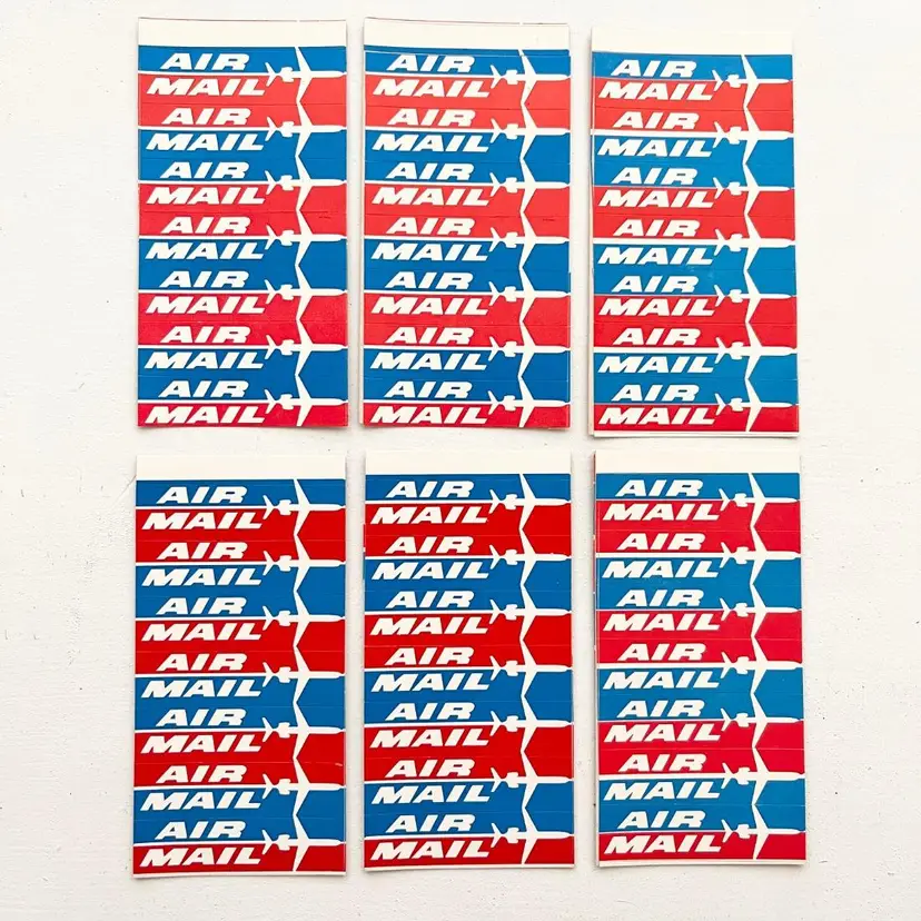 Airplane Labels Air Mail Sticker Etiquette Vintage 1970s Peel Off Self Adhesive 7 Stickers on Each Card Total of 42 Stickers Airplane Graphic Condition: Good Condition Card Measures 3-3/4 inches x 2 inches Packaged in a plastic sleeve inside a rigid envelope Visit my store to see more vintage ephemera, advertising, novelties, gifts, estate sale and yard sale finds https://district.net/u/finderspickerspaper SKU Decal