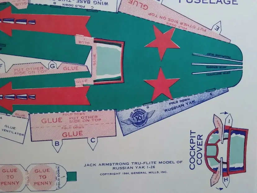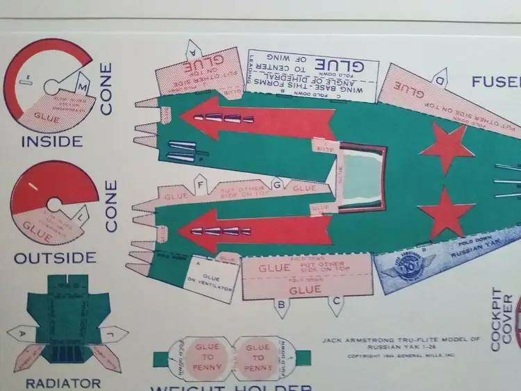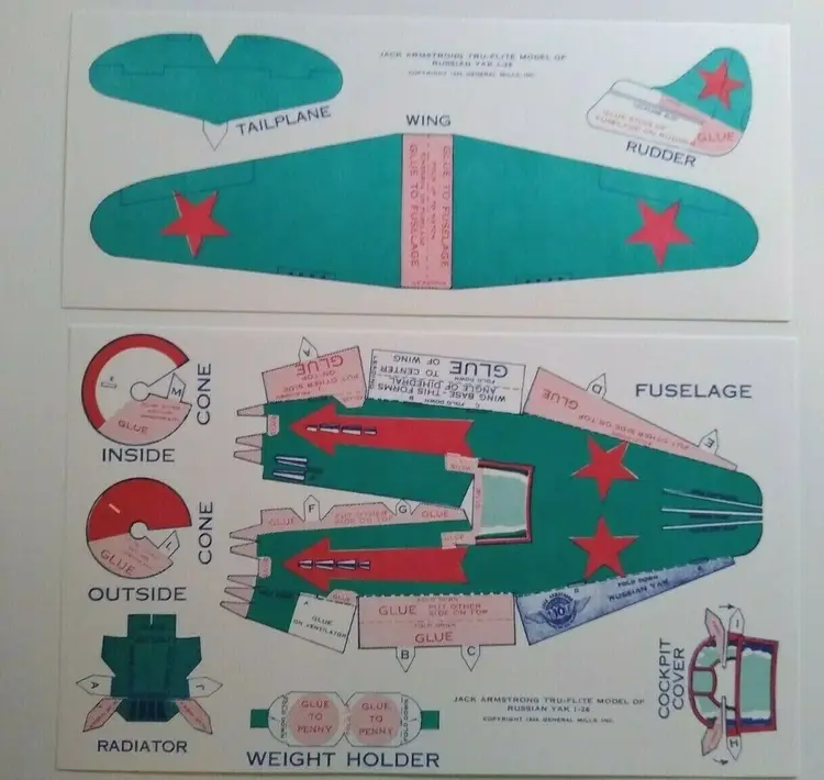 Manufactuer: General Mills, Inc. Paper: Airplane Style: Russian Yak 1-26 Modified Item: No Country/Region of Manufacture: United States Type: Paper Toy Airplane Cereal Premium