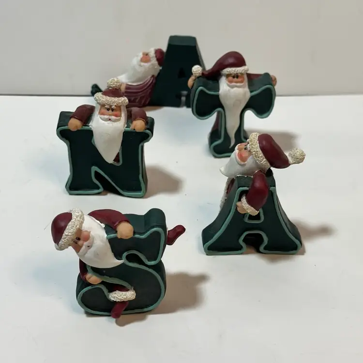 5 beautiful Santa’s that spell Santa, so cute no chips or cracks, holiday figurines, 3x12x.5 lot of 5