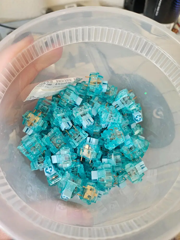 About 110 give or take a couple. Light tactile bump. They were used in my previous akko acr98 (separate sale post). Lightly hand lubed though it was about 2 years ago and may need relubing. Selling as a whole set. I do not have the original packaging for it, so it will be shipped in a plastic container (see images).
