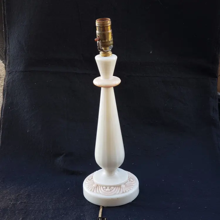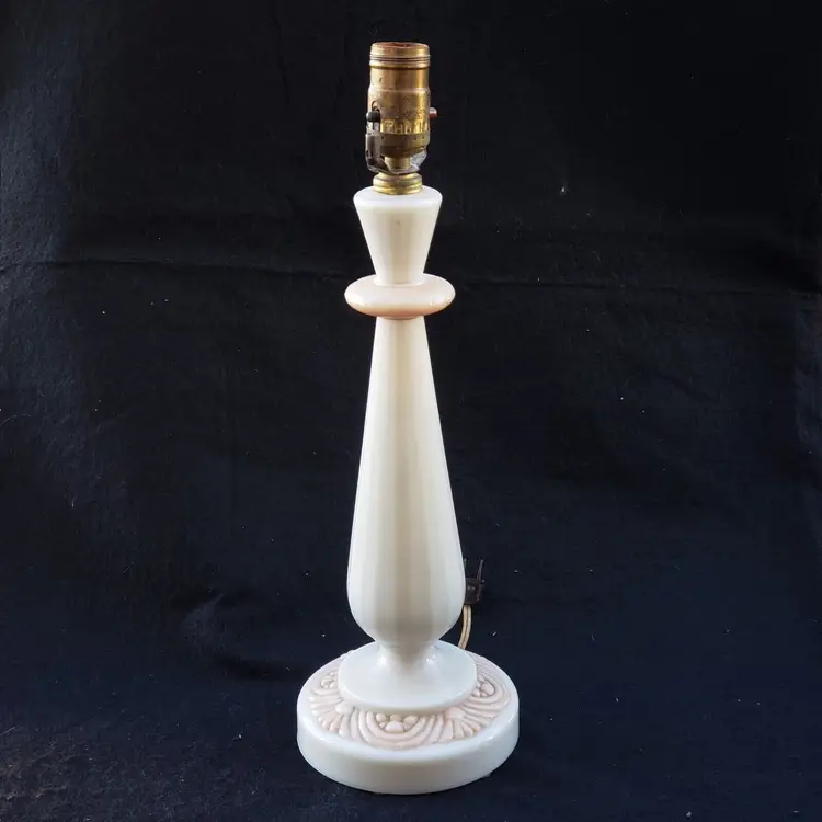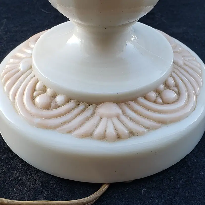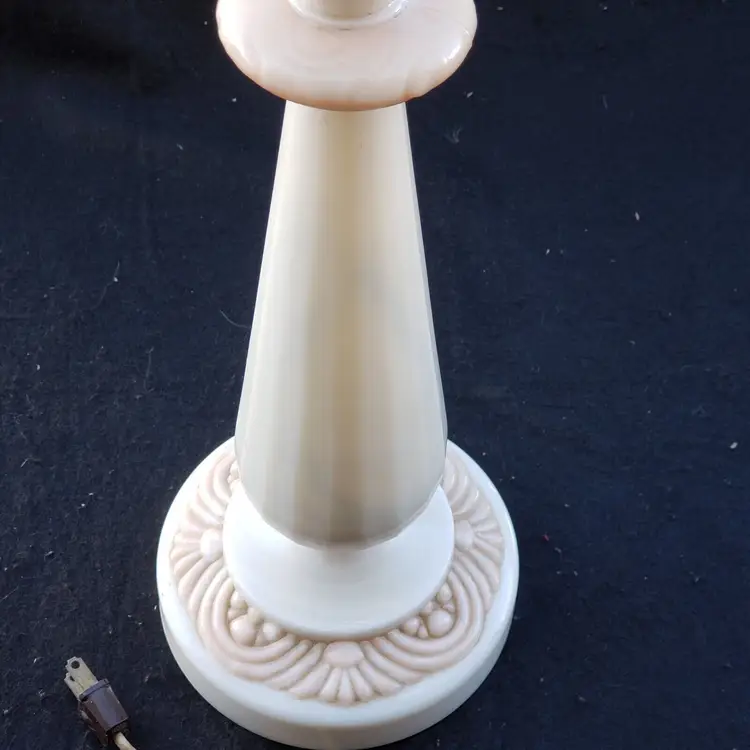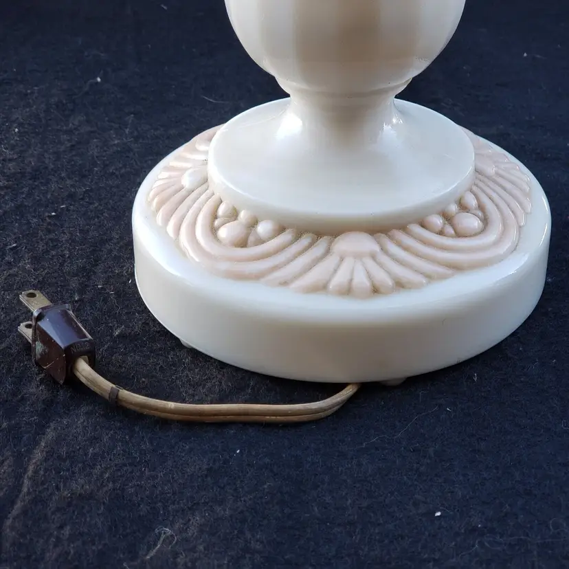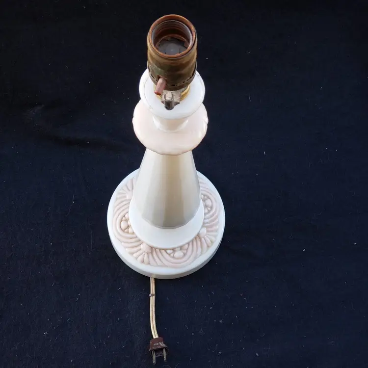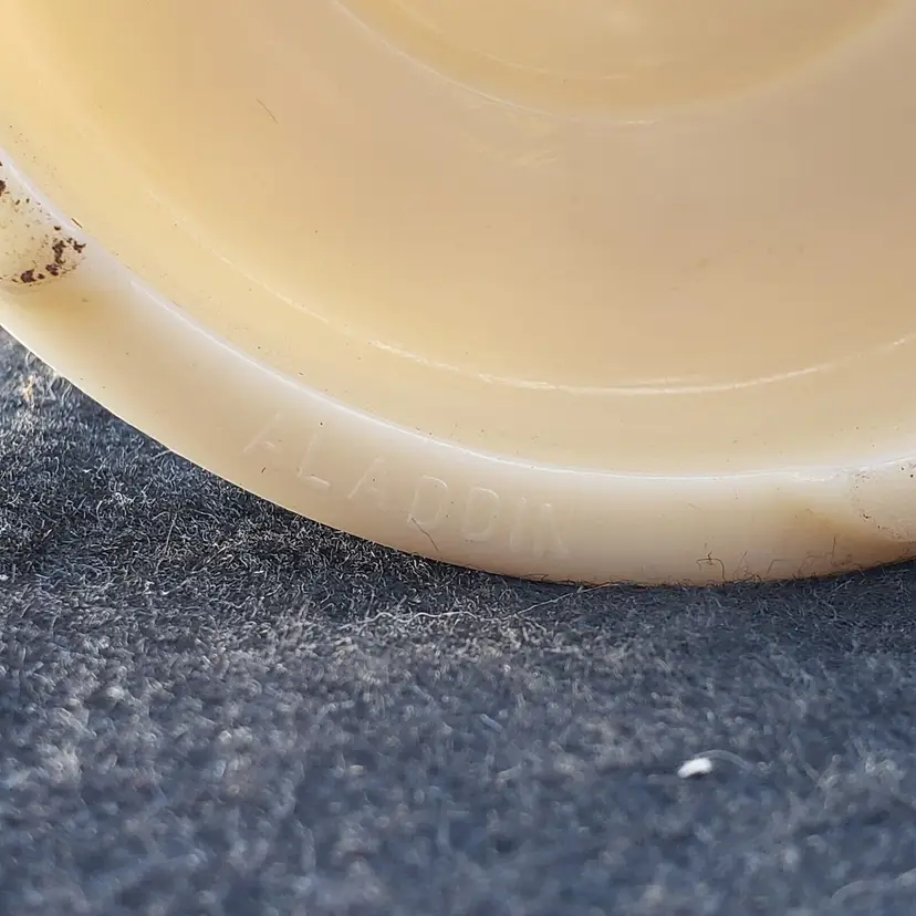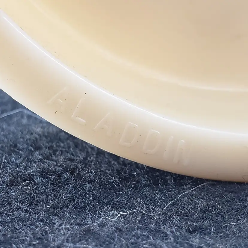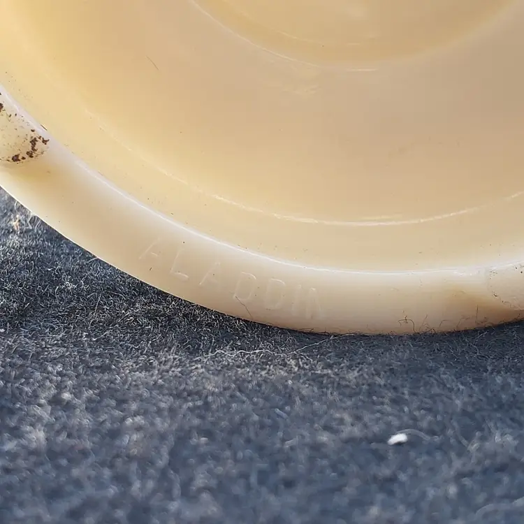 Pattern: Roses Antique: No Power Source: Corded Size: Medium Color: Ivory Material: Alacite Installation Area: Indoor Vintage: Yes Design: Shaded Brand: Aladdin Type: Table Lamp Manufacturer: Aladdin Style: 1950s Original/Reproduction: Original Time Period Manufactured: 1950-1959 Country/Region of Manufacture: United States