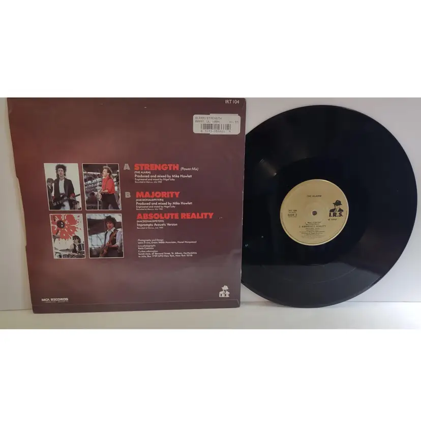This 12" vinyl EP record is a first pressing of the single "Strength" by The Alarm, released in 1985 by I.R.S. Records. The EP features three tracks of new wave and pop rock music, each played at 45 RPM. The record is in excellent condition (EX), while the cardboard sleeve is in very good plus (VG+) condition. The inlay of the record is also in very good plus (VG+) condition. This EP is a must-have for any collector of vinyl records, especially those interested in rock music from the 1980s. The album is in English and was manufactured in the United Kingdom.